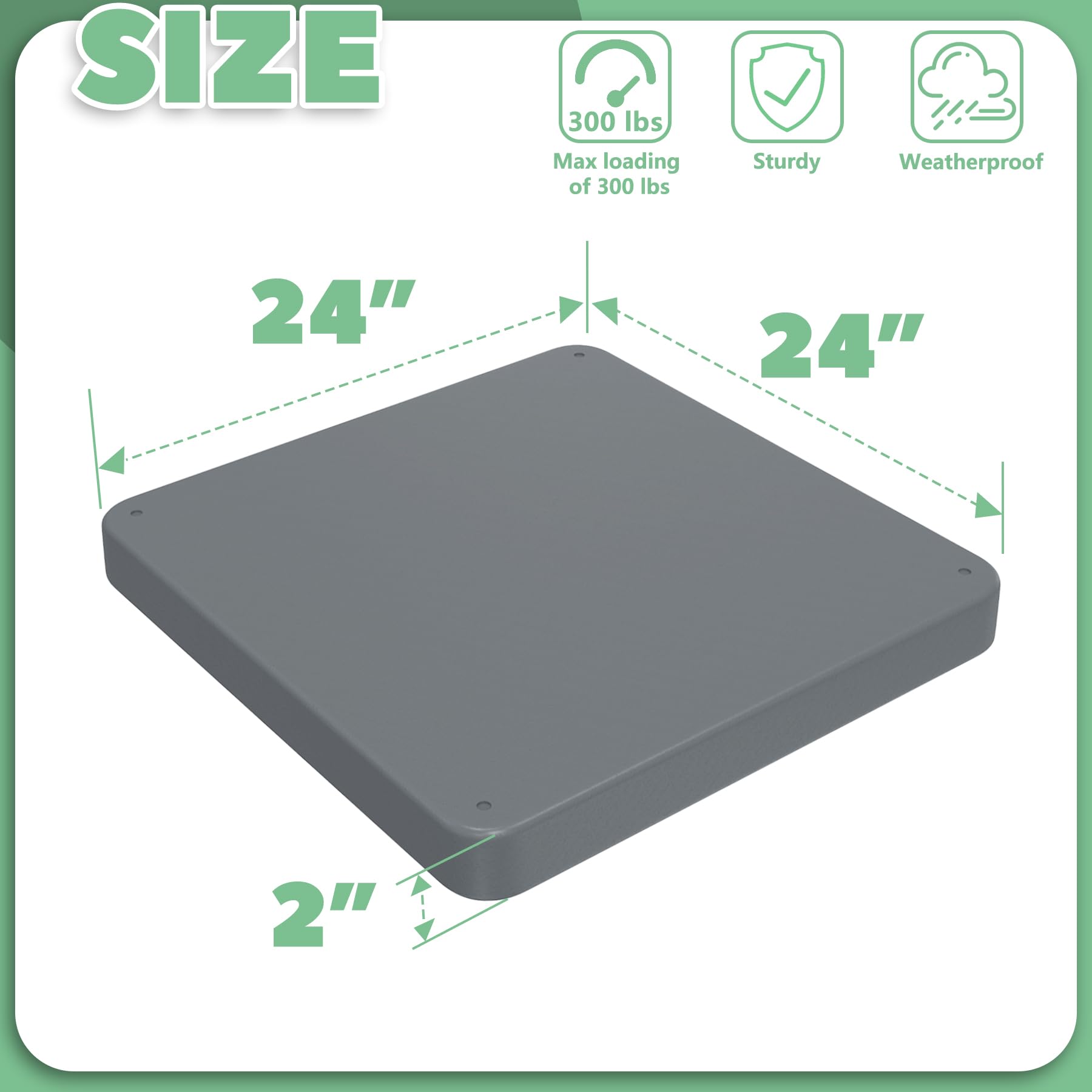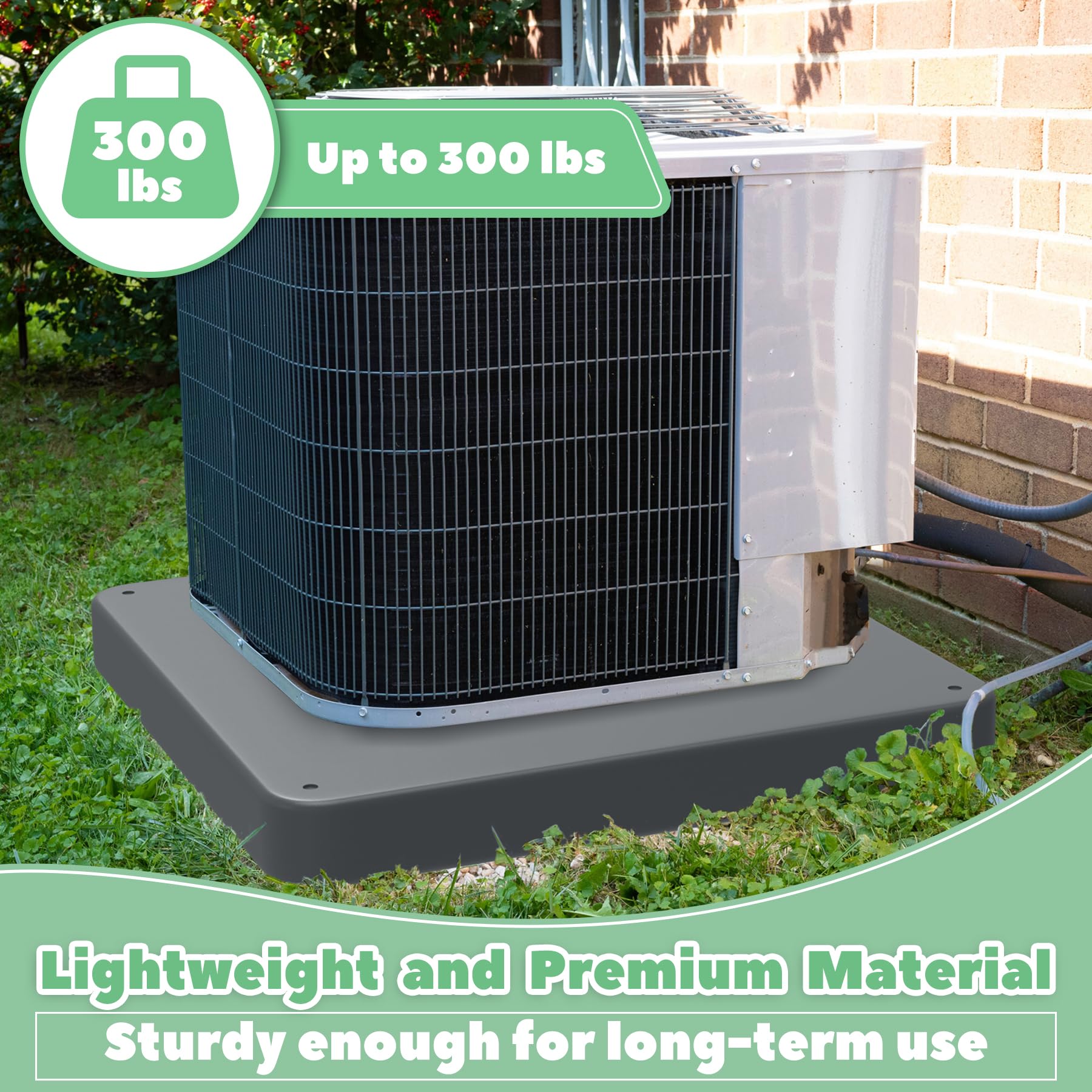 Universal Dimension: The equipment pad measures 24"W x 24"L x 2"T.Maximum load capacity up to 300 lbs.Universal size fits for HVAC, condenser units and air conditioner heat pump systems.Please measure the dimension of your equipment before purchasing.
