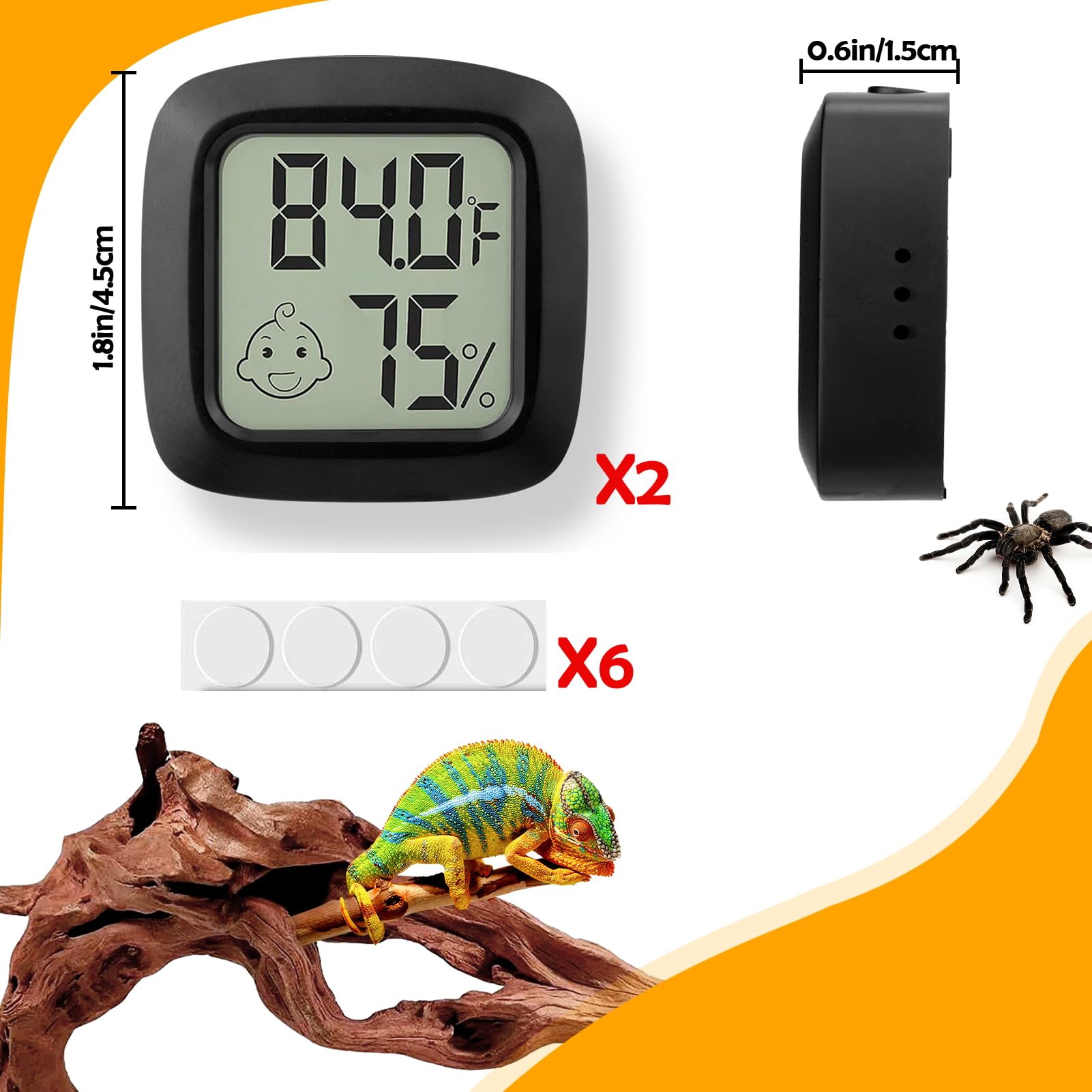 2 PCS Reptile Thermometer and Humidity Gauge for Bearded Dragon with On-Off, Reptile Tank Accessories for Jumping Spider, Leopard Gecko, Hermit Crab, Gecko, Ball Python, Lizard