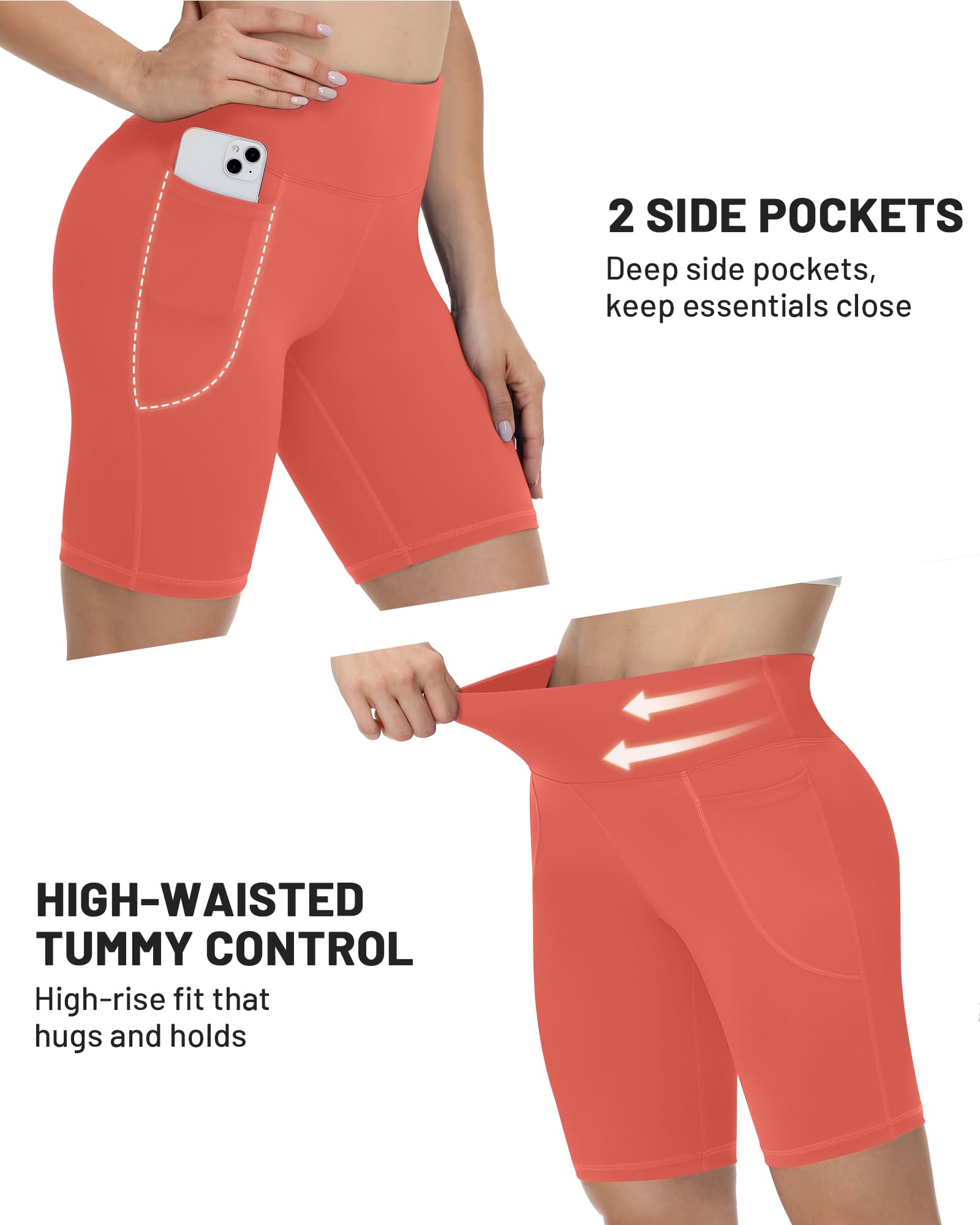 Convenient Side Pockets: Womens workout shorts with two deep side pockets offer hands-free storage for your phone, keys, cards, or other small essentials during exercise