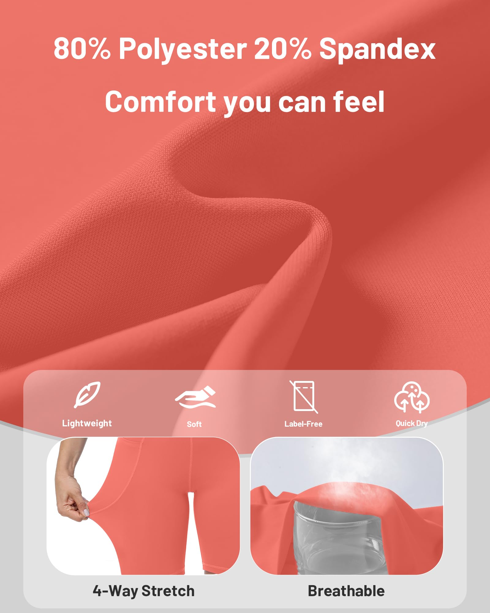 Breathable & Stretchy Fabric: Made with 80% polyester and 20% spandex, these womens biker shorts offer a silky-soft feel, stretch, moisture-wicking, and breathability for ultimate comfort during workouts