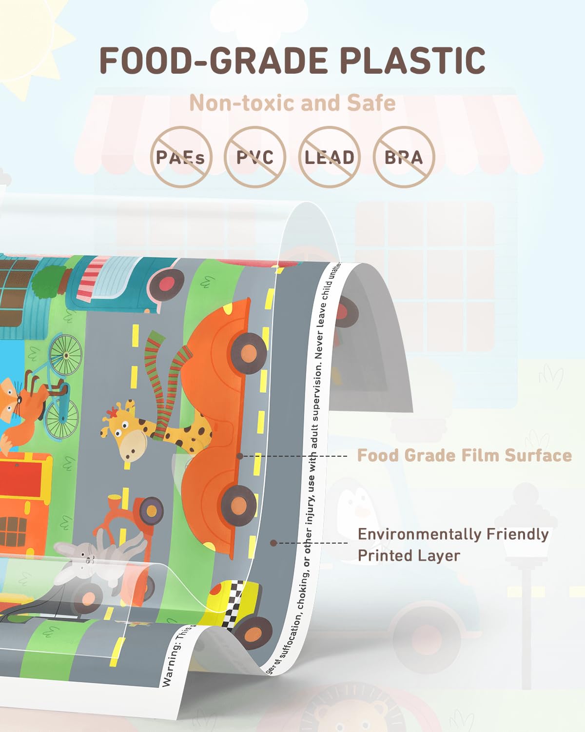 Food Grade Plastic: We put baby's health first. The baby disposable placemats stick-on are made of food-grade plastic, BPA, PVC, PHTHALATE and LEAD-free. If you worry about restaurant tables, you definitely need these disposable placemats