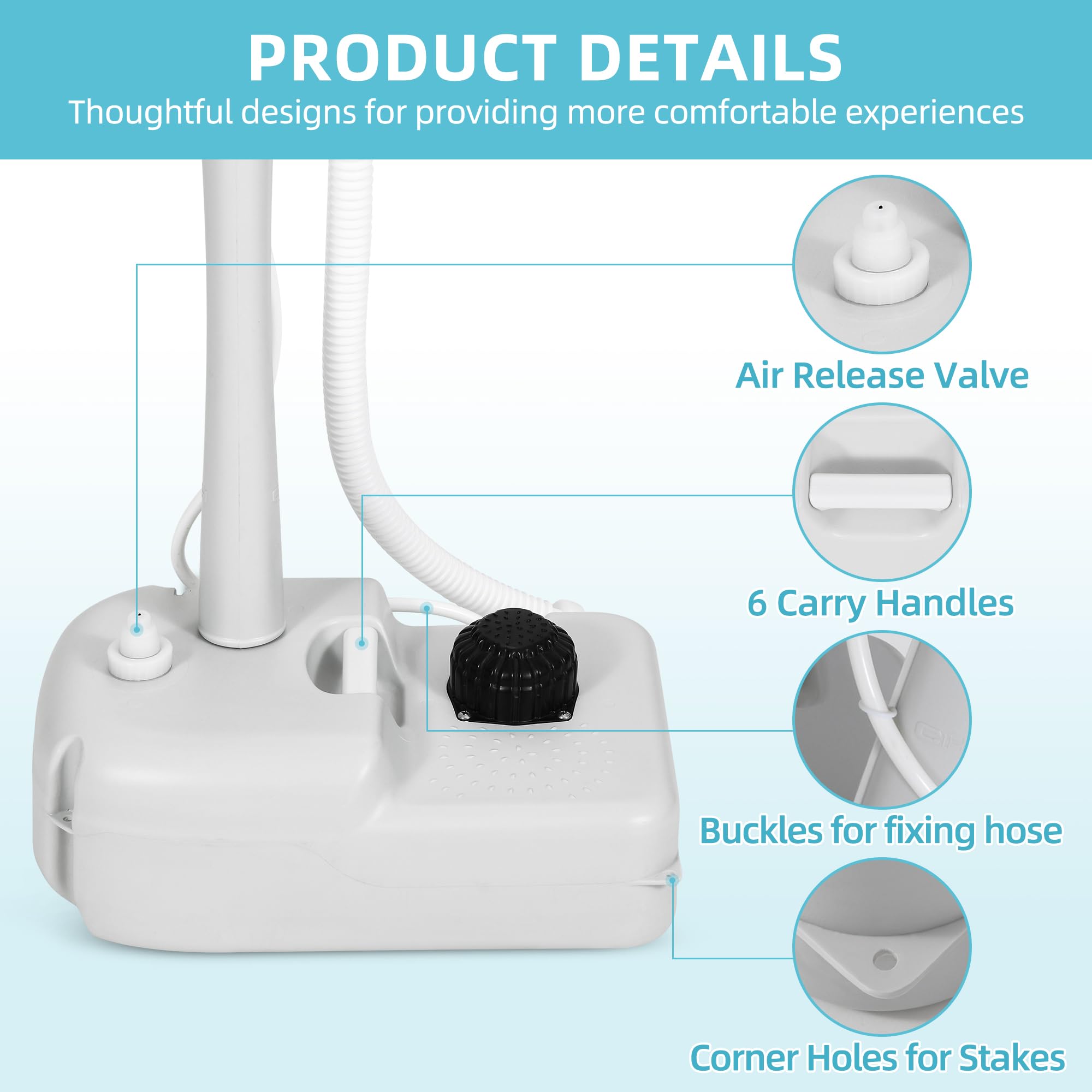Soap dispenser & towel holder: Comes with a 3L (0.8 gallon) soap dispenser for up to 3000 washes; a foldable rod allows for convenient hanging of towels and toilet paper, adding convenience for outdoor use
