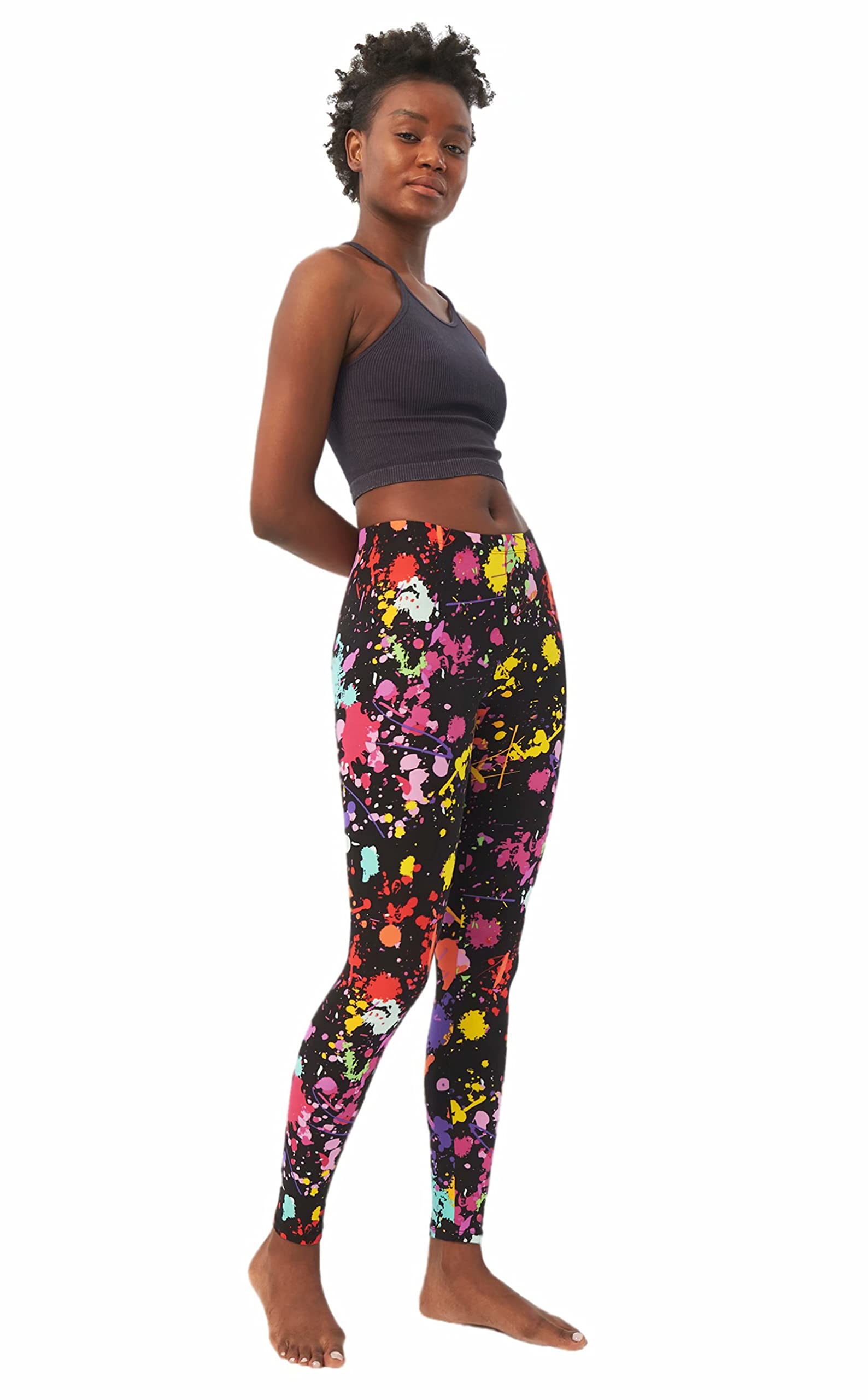 sissycos Women's 80s Leggings Artistic Splash Printed Buttery Soft Stretchy Pants (Medium, Color Splash Black)