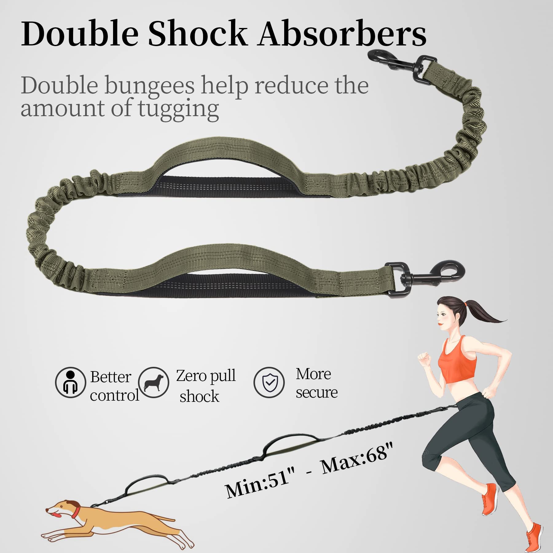 Double shock absorbers: Feature 2 shock-absorbers to help provide a bit of “give” in the leash. This can help reduce the amount of tugging both you and your dog will experience as you cruise down the road