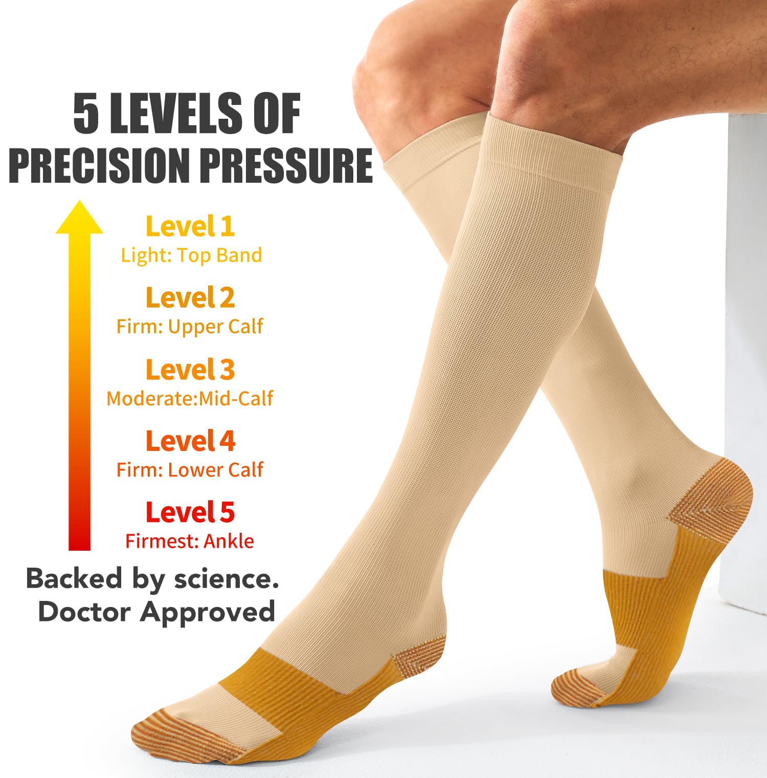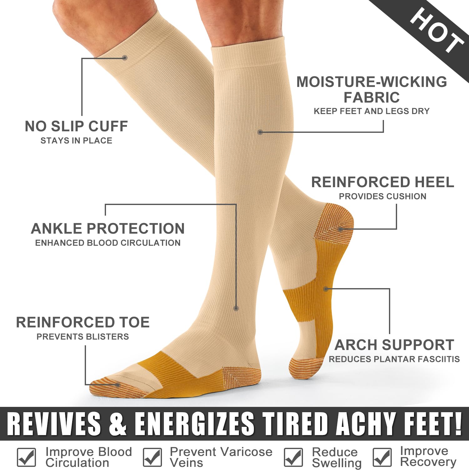 PERFECT FOR EVERYONE-Ours premium compression socks for all your favorite activities.These socks will keep doing their job while you focus on your daily routine,whether you're driving the kids,running around for meetings at work,doing chores at home,or doing anything else at all. everyone can benefit from the power of compression to feel their best and conquer their day, every day.Our socks perfect for everyone regardless of age,gender and location!