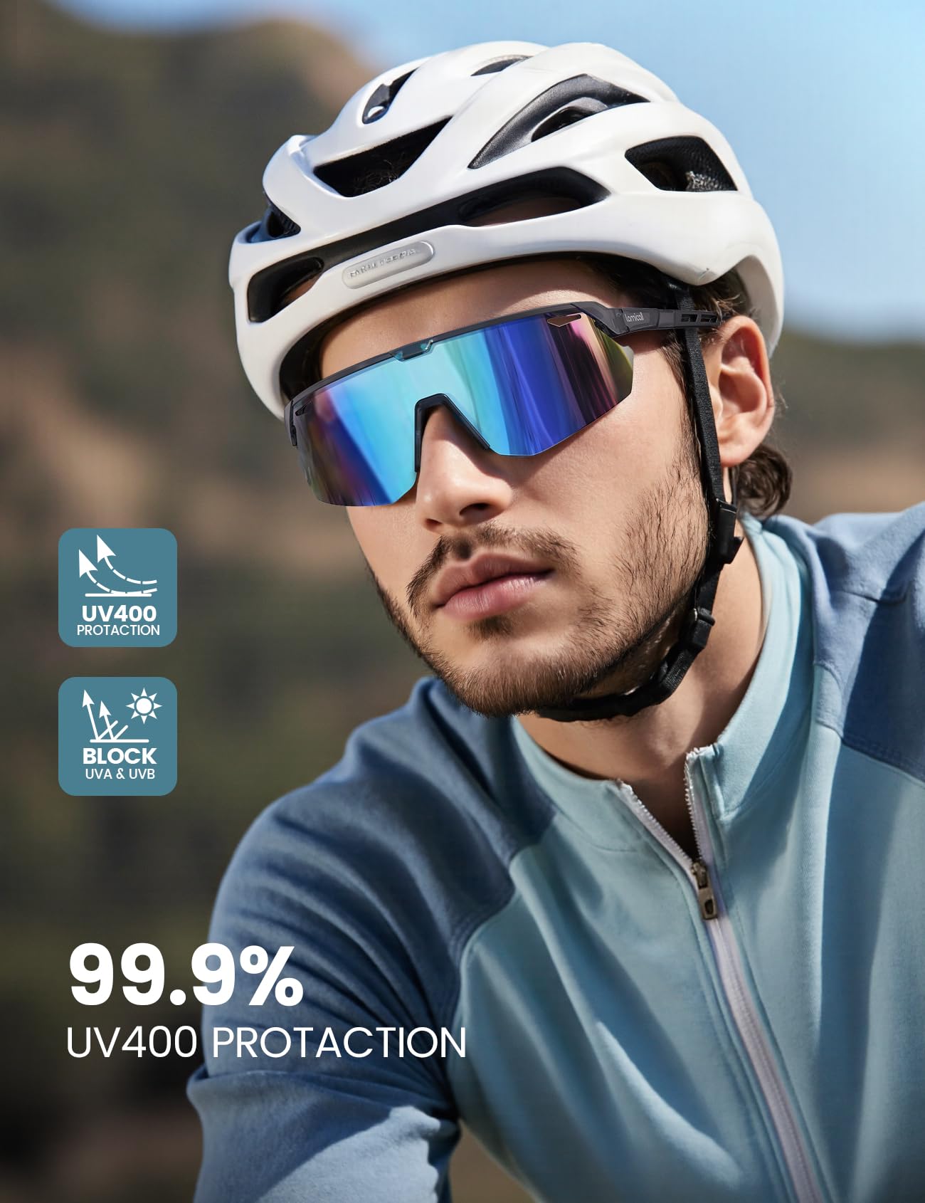 【Impact-resistant TAC Lens & Super Wide Field of View】The cylindrical lens design is matched with the surround structure, which allows you to have a wider field of view for safer riding, and also effectively reduce air resistance. With impact-resistant TAC lenses, keeping you safe during exercise.