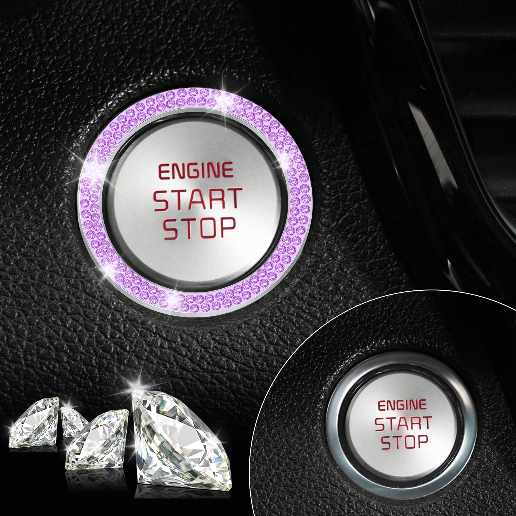 【High quality】Push to start button decoration ring made of high quality zinc alloy, which is sturdy and durable, and with Double ring crystals on it, making the product dazzling and beautiful for Car Glam Interior Accessories and Unique Women Gift.
