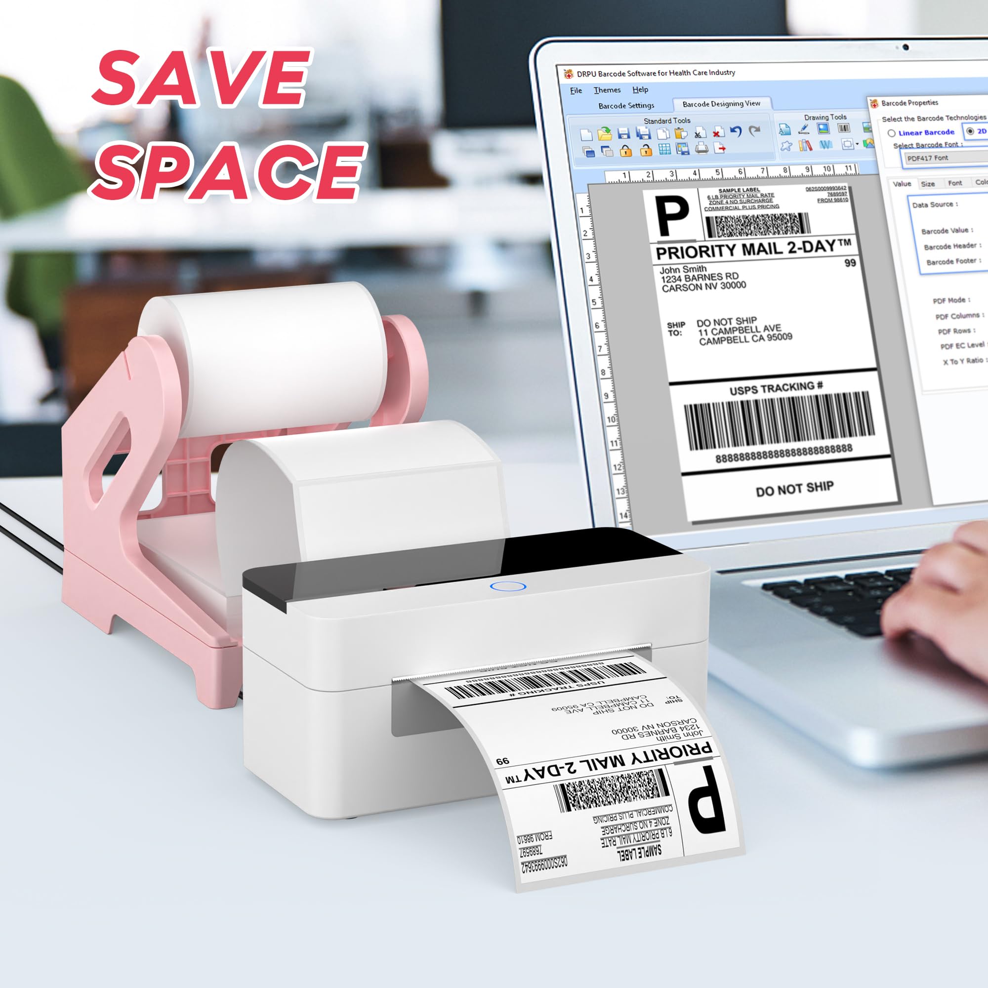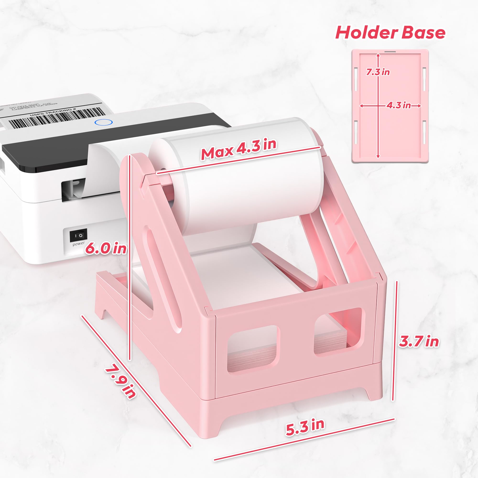 Convenient Design: It can hold both roll and fan-fold labels, which saves space and provides a neat look on the desktop; it supports most labels, with a maximum outer diameter of 7 inches for roll labels, and a maximum length of 7.3 inches and a maximum width of 4.3 inches for fan-fold labels
