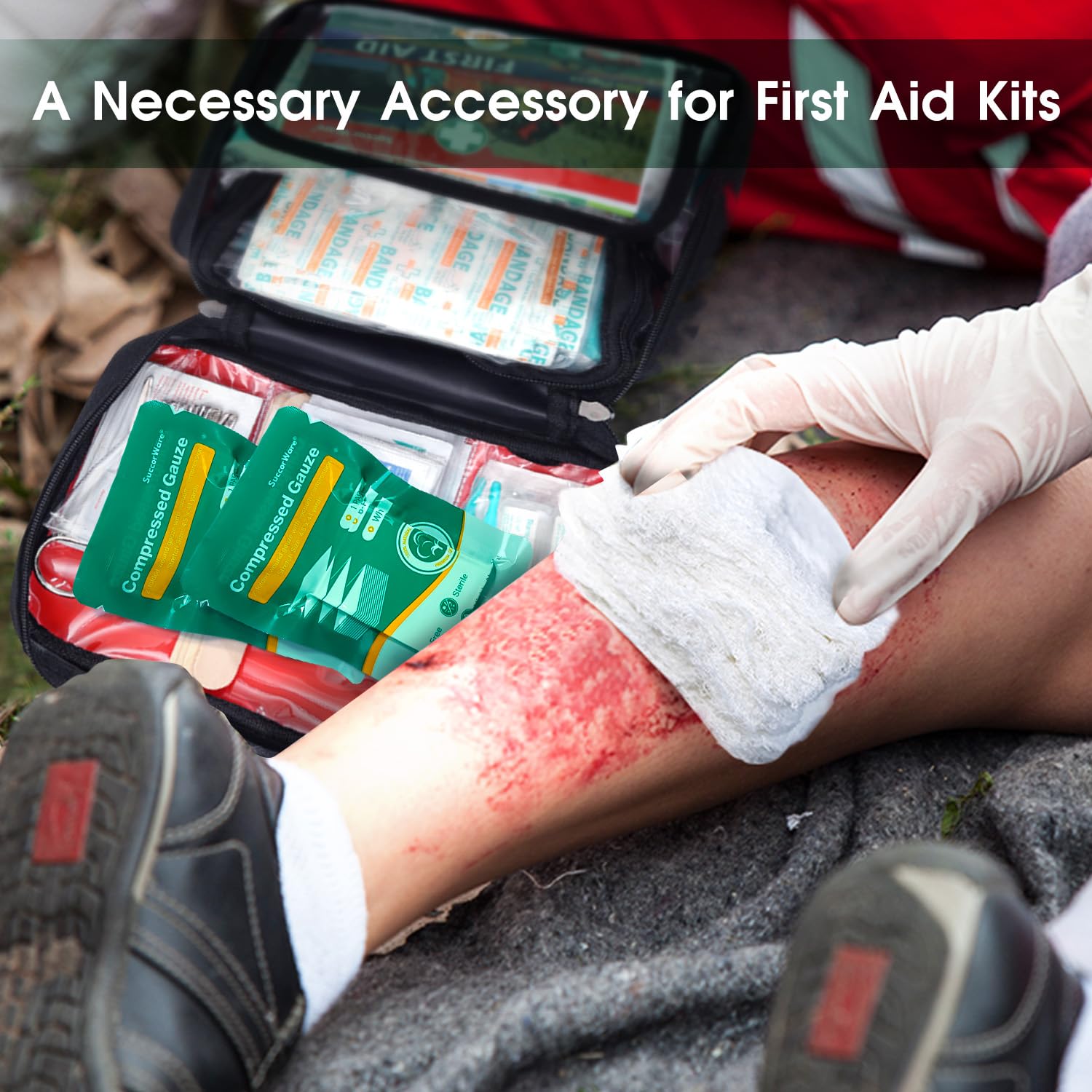 SURPRISE ITEM - We don't know when the unexpected will come, so it's important to be prepared at all times. compressed gauze as a first aid accessory is perfect to give to a friend or family member in case of an emergency. We are confident that the product will not disappoint you, it is customized for bandaging emergency wounds.