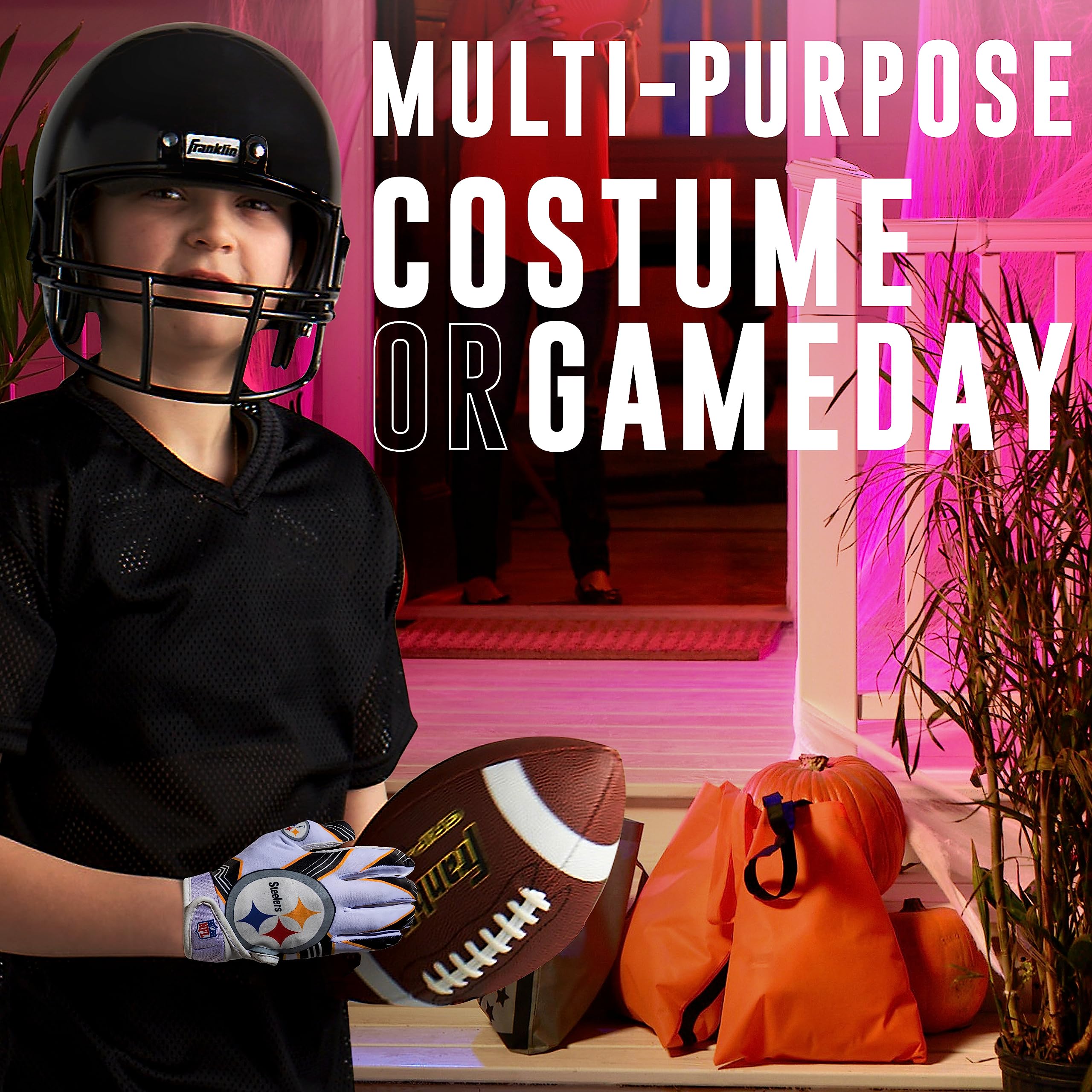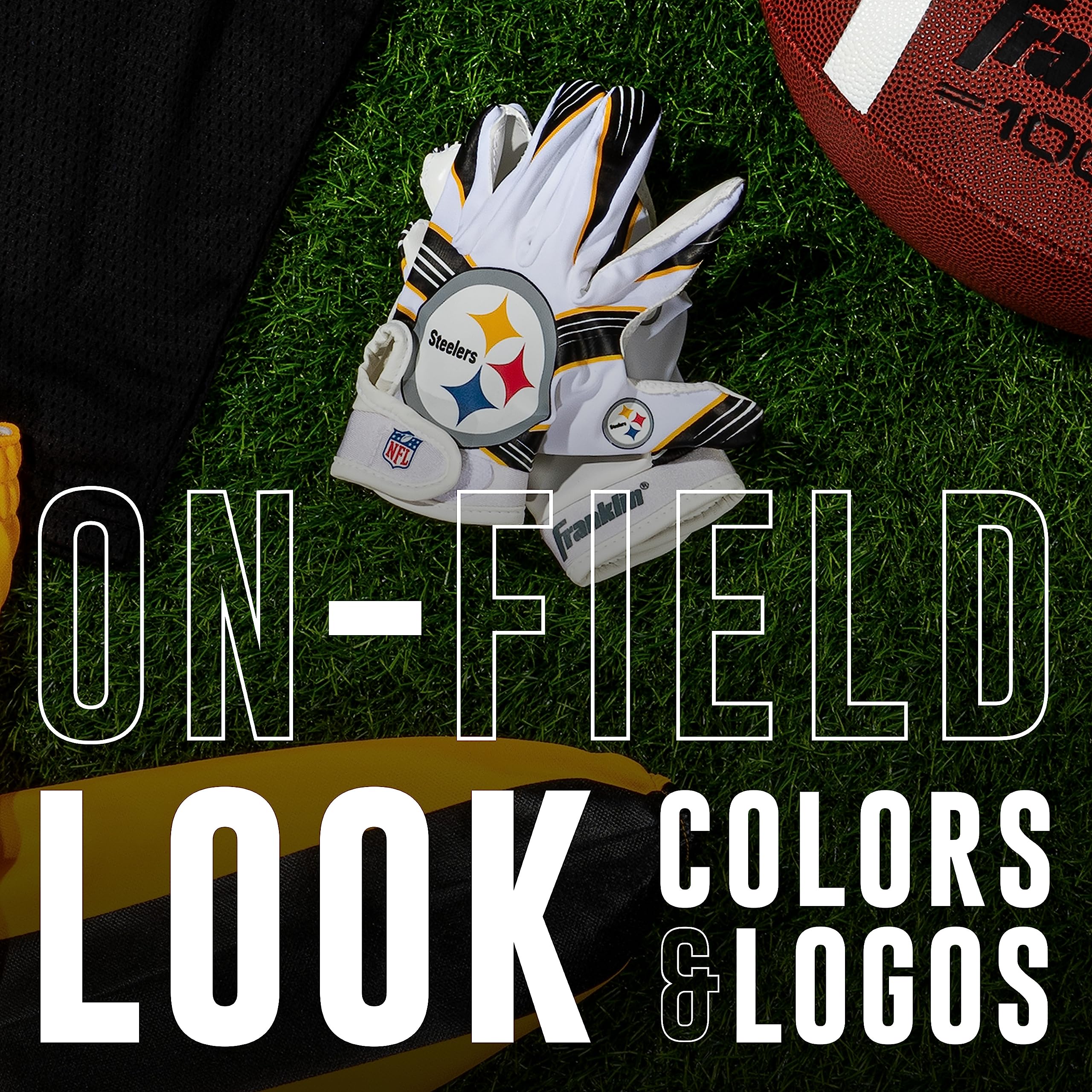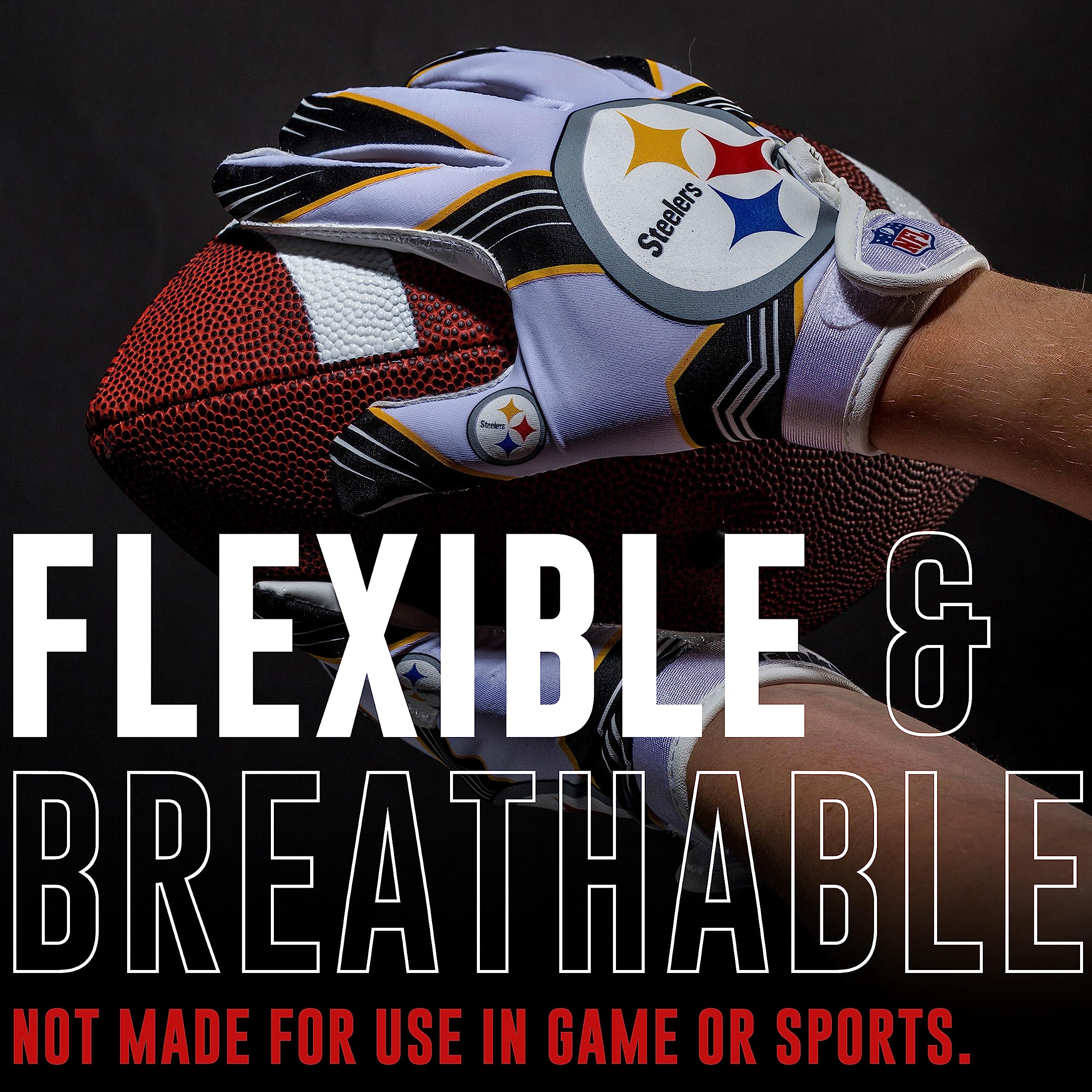 The NFL Youth Team Receiver gloves are designed for the ultimate fit, feel and function! These gloves come with official NFL team logos and colors, so you can rep your favorite team in a game or as part of a costume. Constructed of high quality materials that combine comfort and tack, these gloves provide the fit and grip you need to catch and hold onto the ball. So whether in your backyard or in the field, playing catch or in an organized game, you can expect the best from these gloves while supporting your favorite NFL team!