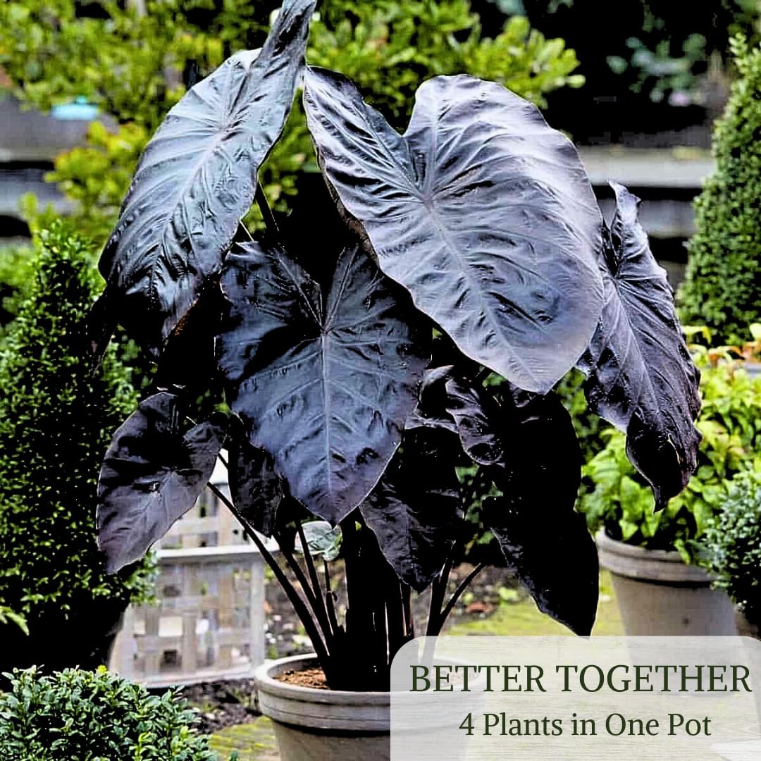 Enhance your space with this exclusive set of 4 Black Magic Elephant Ear plants, perfectly curated to create a stunning display with a height of 5 to 10 inches. Each plant comes fully rooted and ready to be potted, ensuring an effortless setup right out of the box. These exotic plants boast bold, dark foliage that delivers a dramatic tropical vibe to any environment. Ideal for both indoor and outdoor settings, they serve as a striking focal point whether placed on a sunny windowsill, in your garden, or as part of a modern interior design. Simply pot these vibrant plants and watch as they transform your space into an oasis of lush greenery and refined style. Perfect for gardening enthusiasts and design aficionados alike, this set promises to add a touch of elegance and a burst of life to your décor.