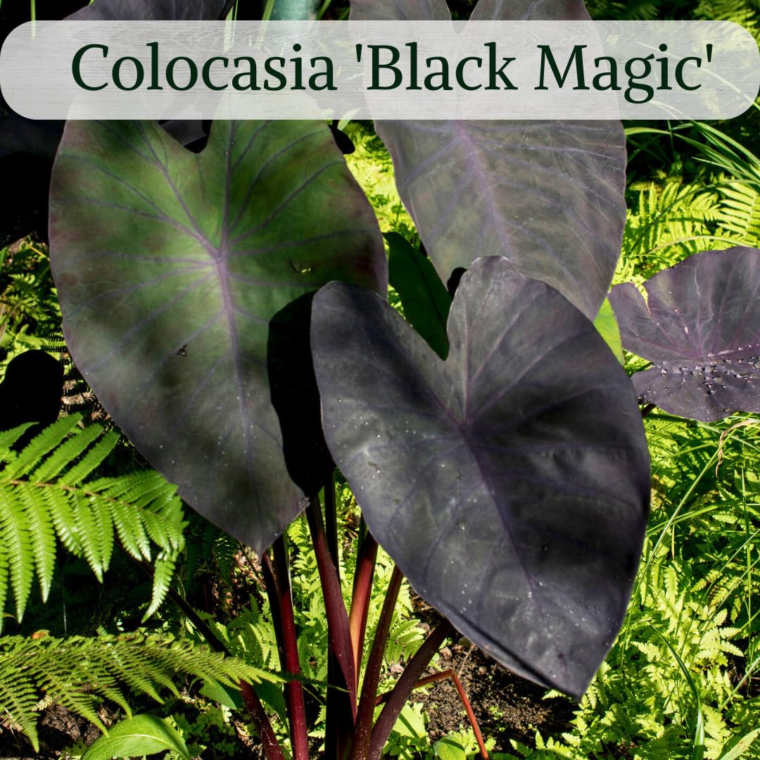 ✨EXQUISITE BLACK MAGIC SET: Our starter collection features 4 fully rooted Black Magic Elephant Ear plants, ready to be potted and showcased in your home or garden.