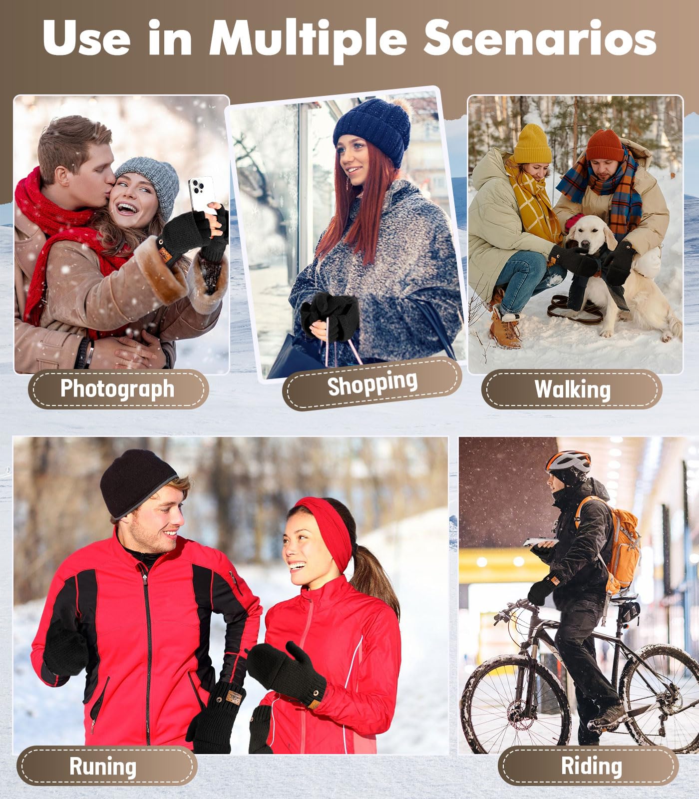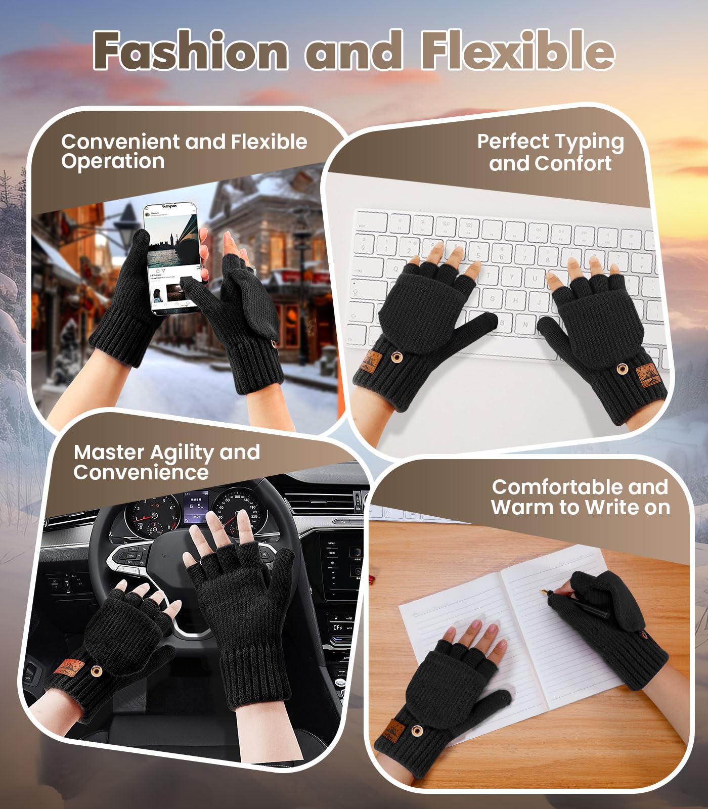 Touchscreen Friendly Design:Unlike ordinary wool gloves,our design offers versatile wear with fingerless or full finger options.Stay connected without freezing your fingers! Simply flip the top of the glove and secure it with the button to reveal finger holes, allowing you to use your touchscreen while staying warm and stylish.