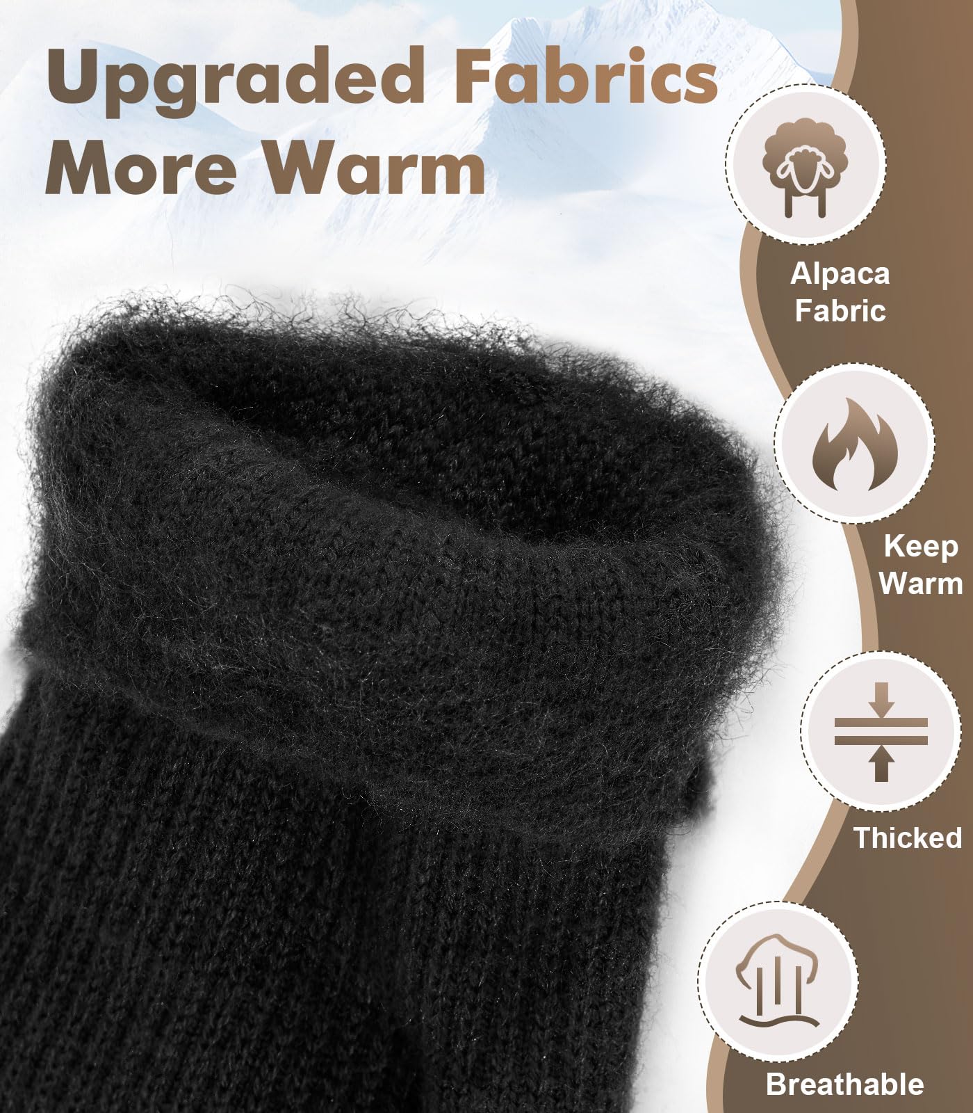Alpaca Wool Comfort:Crafted from luxurious alpaca wool,these convertible gloves provide exceptional warmth, softness,and comfort for chilly autumn and winter days. Featuring a high quality, thick,and wind resistant lining, these gloves are perfect for all your outdoor adventures, keeping you cozy whether you’re hiking or skiing.