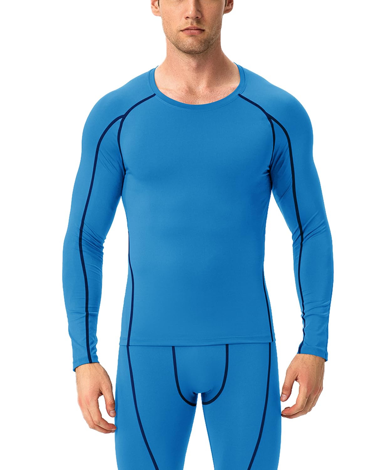 【Classic& Round Collar Long Sleeve】Stylish Design, Mens Compression Shirt increase more flexible and keep. Base-Layer mens cold weather shirts ergonomic seam design follows the natural lines of the body.