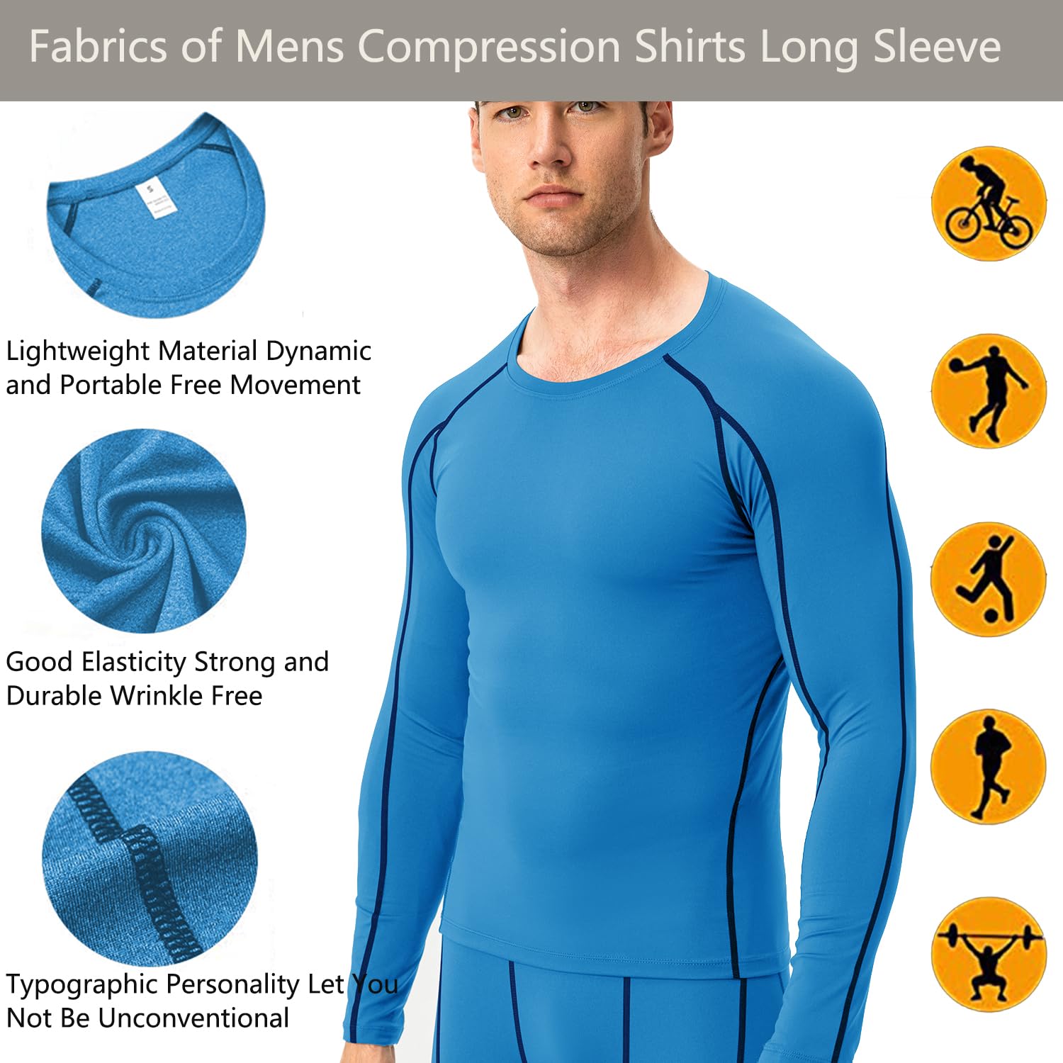 【Ultra Soft Running Tops】Spandex shirts for mens, workout gmy shirts, soft and quick-dry fabric with superior breathability and moisture. Lightweight winter athletic long sleeve compression shirt underwear feels almost like a second skin.