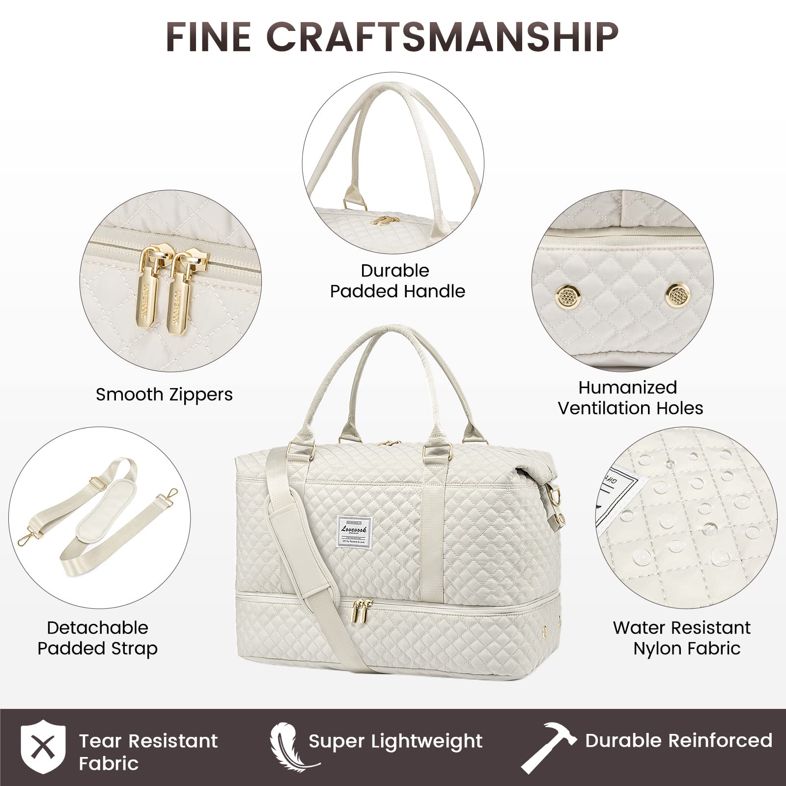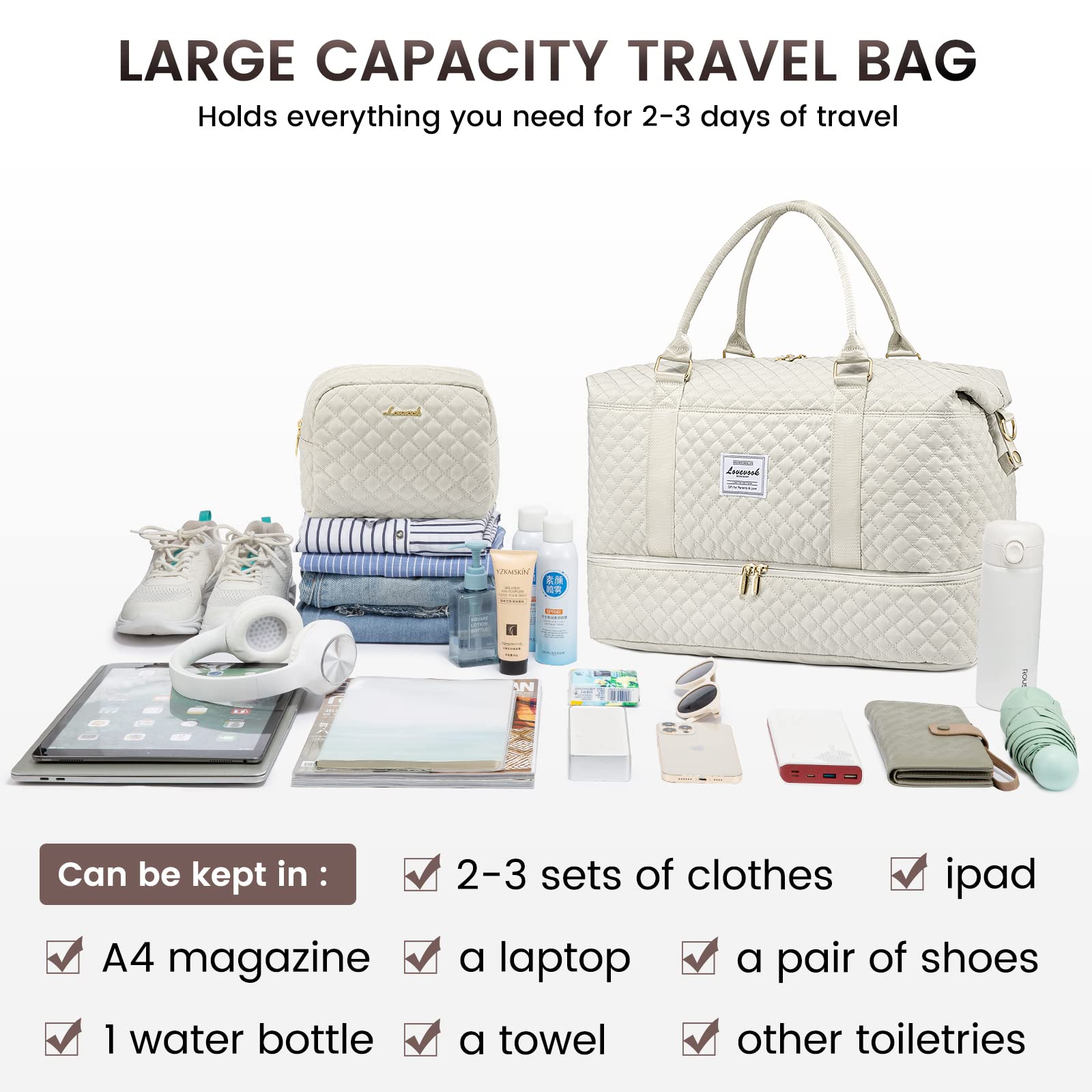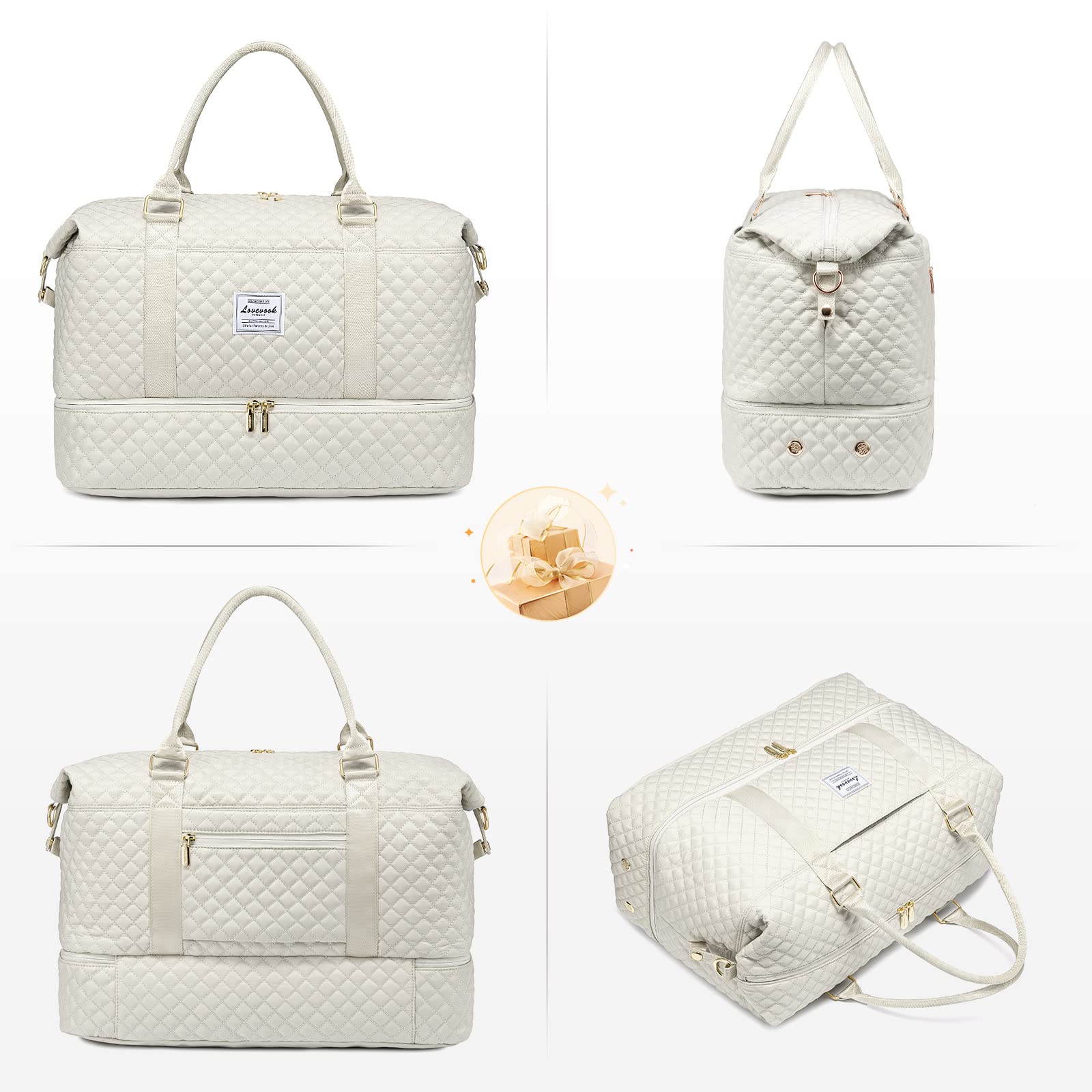 【TRAVEL TOTE BAG WITH SHOE COMPARTMENT+FREE SEPERATE TOILETRY BAG】This travel bags for women comes with a $15 toiletry bag to store your cosmetics/toiletries. Separate flat bottom compartment of this duffle bag women can hold your shoes or dirty clothes for easy separation from clean clothes when traveling.If you're a novice mother, the bottom part is also perfect for storing diapers/wipes/diaper bag items. It can also be used as a hospital bag,mommy bag and medical bag.