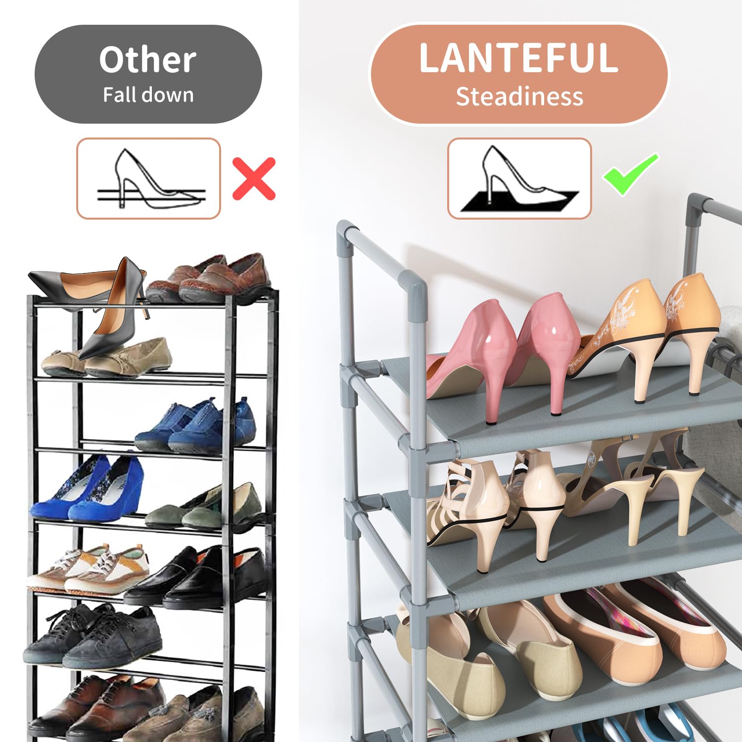 【Sturdy Material & Compact Structure】The tall shoe rack is made of durable waterproof non-woven fabric layers, reinforced plastic connectors and thickened iron pipes, good stability and prevents rust, The shoe rack closet can hold larger and heavier shoes or objects. The shoe organizer has the characteristics of firmness, stability, and long life.