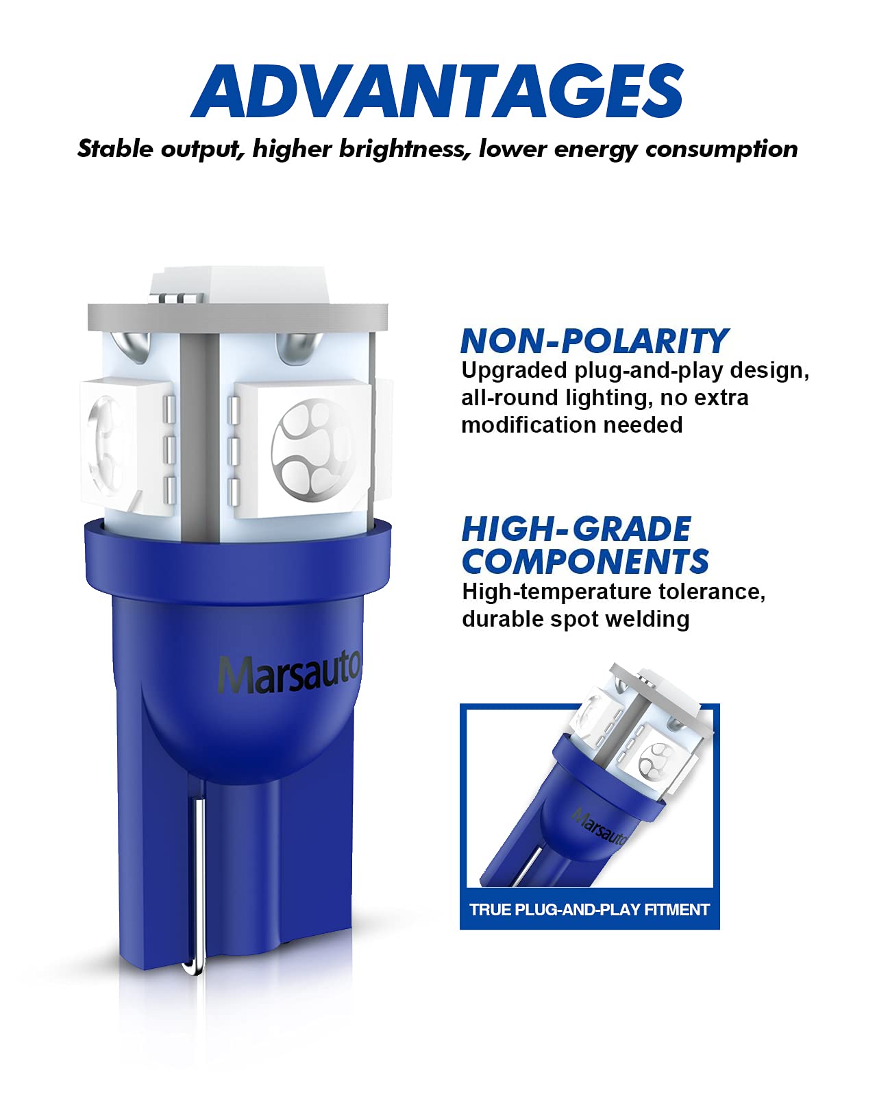 Tips: 10 packs of 194 led bulbs of one set, for some vehicles, It may need a canbus decoder to fix flickering or error code