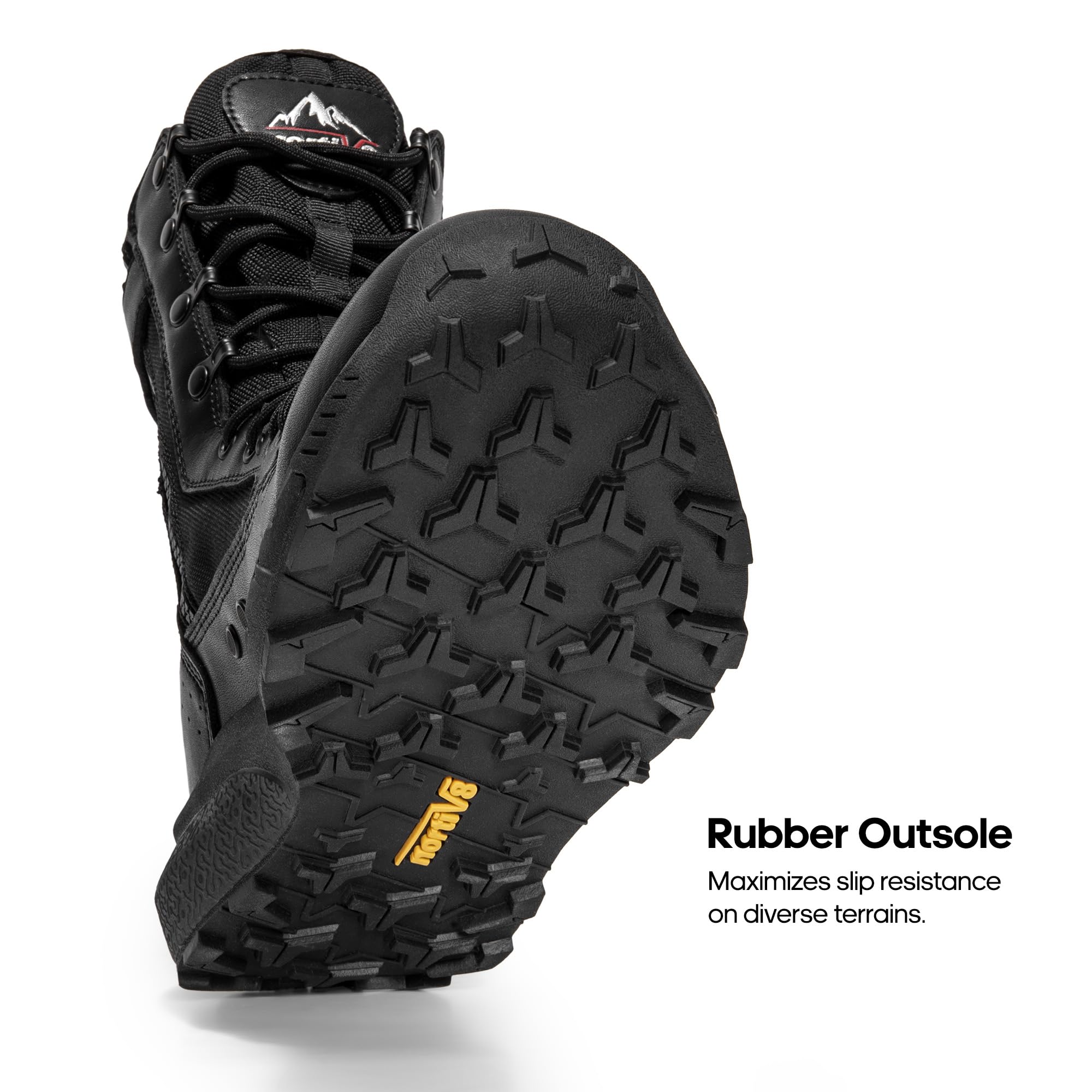 Slip-Resistant: Enhanced with a high-traction rubber outsole featuring non-slip grooves, these men’s military boots optimize grip on various surfaces.