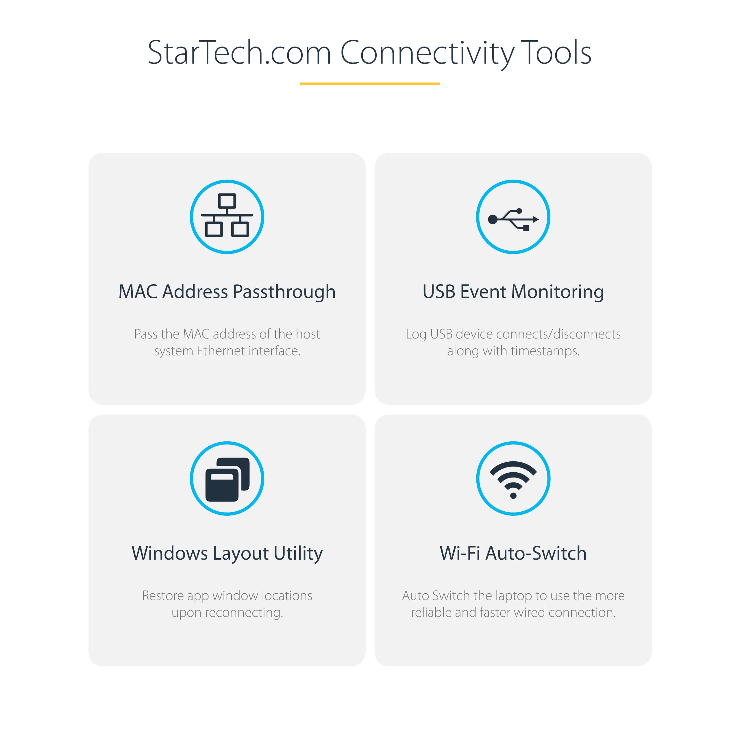 OUR ADVANTAGE: Included connectivity tools for IT Pro's and IT help-desk support teams with Network MAC Address Pass-Through for network security, WiFi Auto Switching for improved network performance, USB Event Monitoring, and Windows Layout