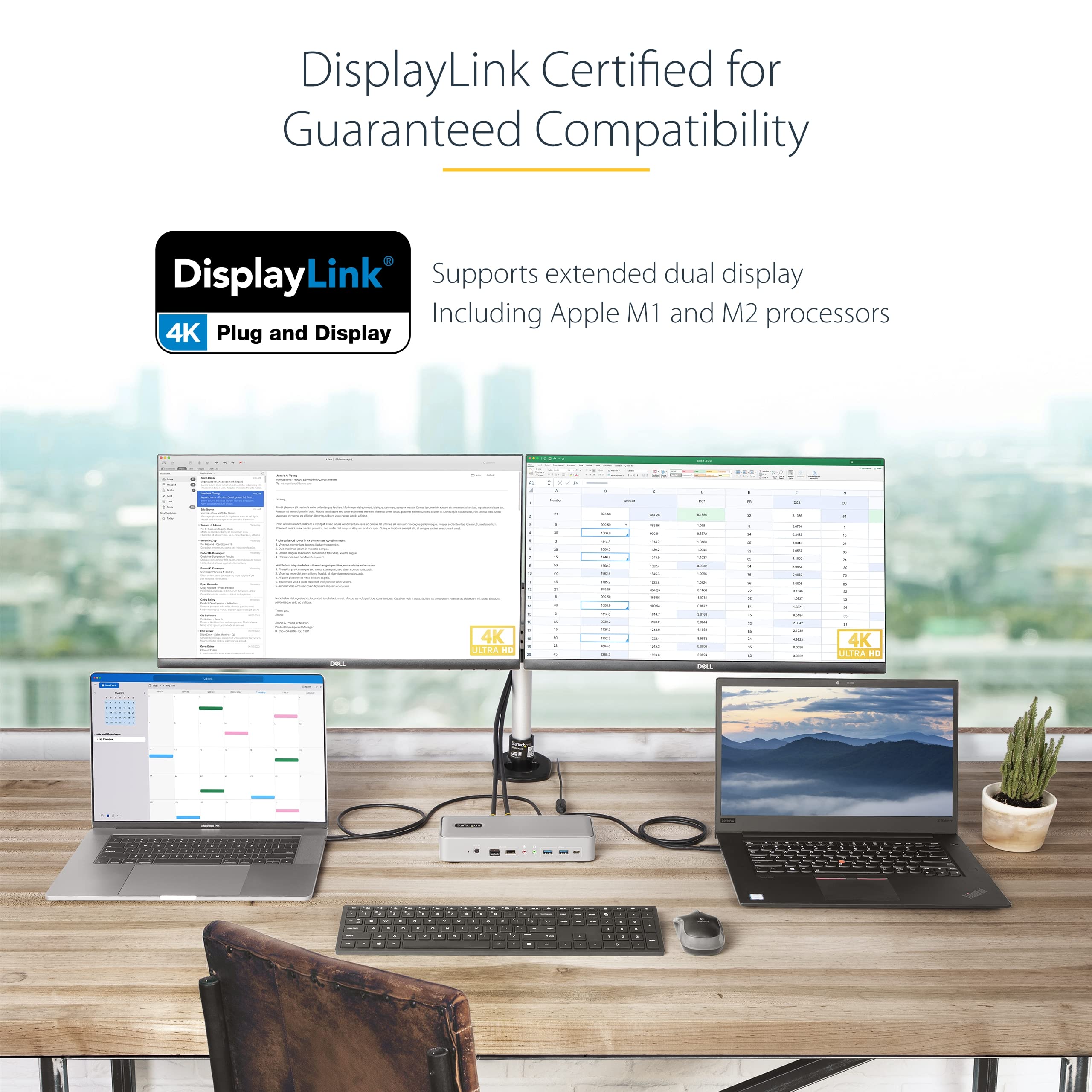 COMPATIBILITY: Dual-Host KVM Dock supports mixed OS, Windows, macOS, ChromeOS, Linux; Works w/ Intel, AMD and the Apple M-Series, enabling two external displays even on laptops that natively only support one; Driver installation required on Windows/macOS