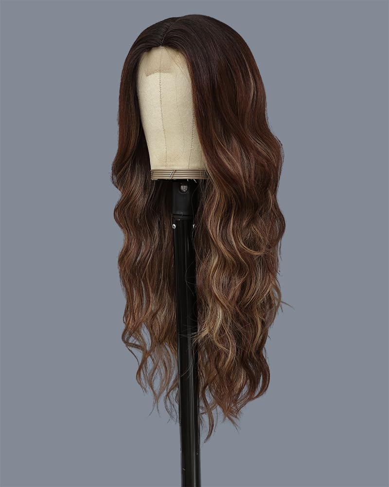 【WHAT YOU GET】1 x 26inch Long Wavy Brown Highlights Blonde Wig with Hand-knitting small lace part, 2 x Wig Cap and friendly customer service