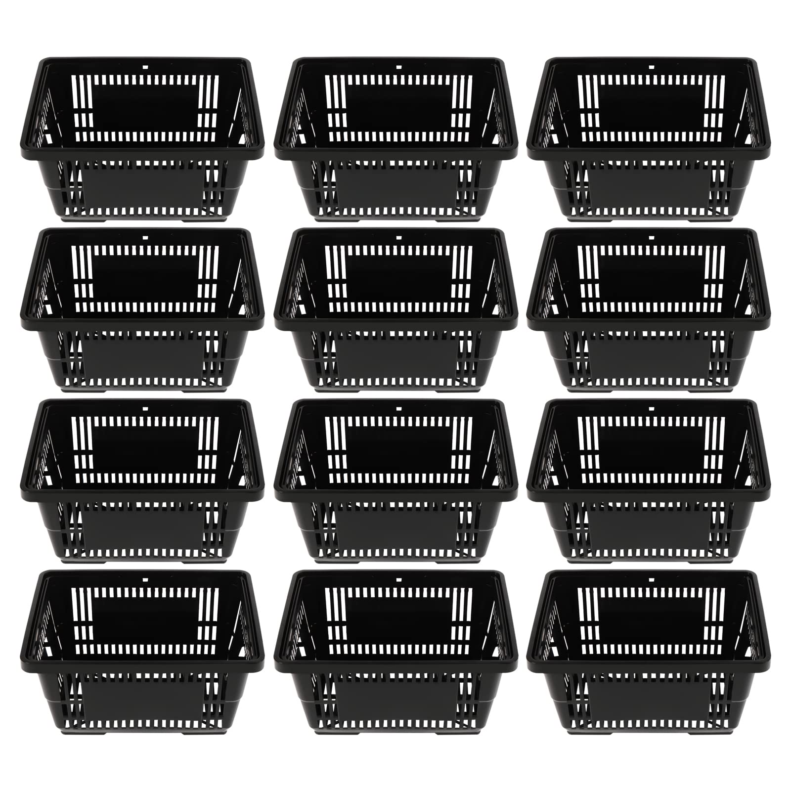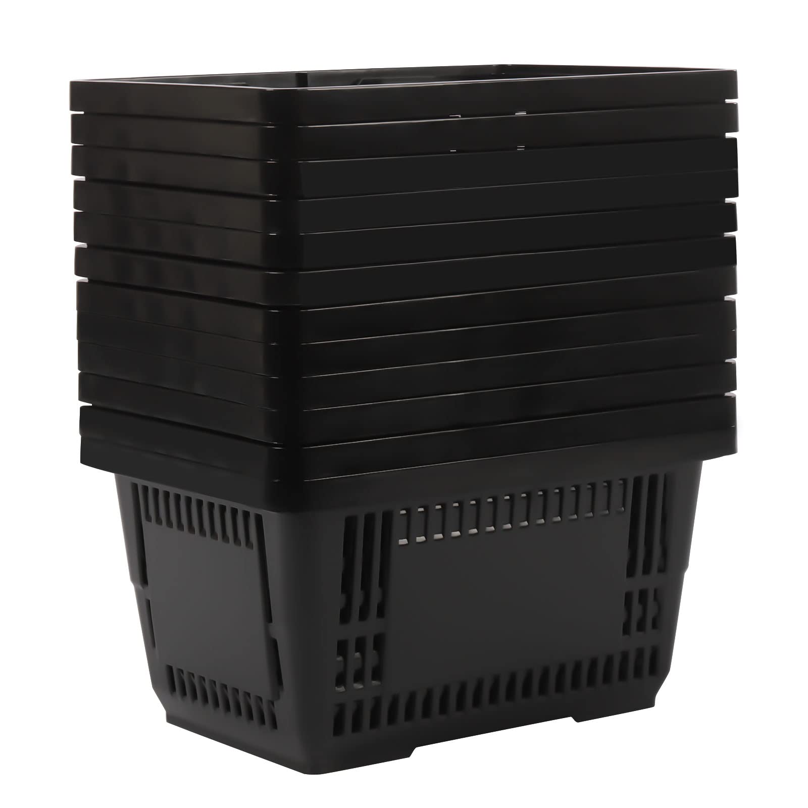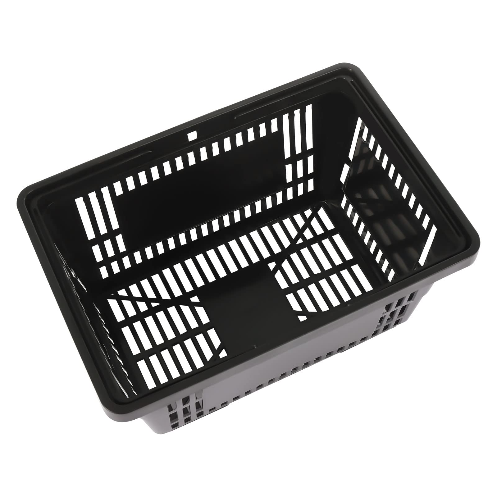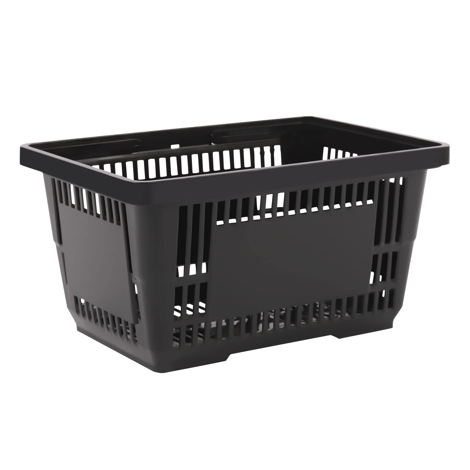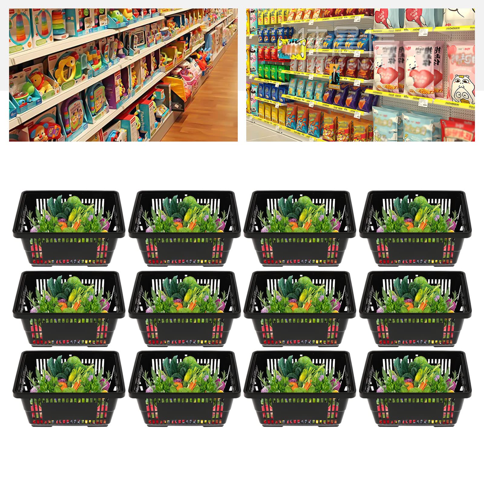 Description: When shopping, your hands are not enough to hold the fragmentary items while this shopping basket will bring a convenient shopping trip for you. Made of high-quality PP, it has good durability and stability. It's a good helper for you when you want to buy some fruit, books, snacks, or other daily necessities. Details: Ergonomic Handle: It is equipped with two ergonomic handles, allowing you to easily lift this product while reducing the fatigue of your hands. Meanwhile, the handles can be folded to save space. Application: It is suitable for carrying and storing sundries, clothes, fruits, toys, vegetables, etc in bookstores, supermarkets, KTVs, and other places with a load-bearing capacity of 22lbs. Specification: Model: MX-11 Color: Black Material: PP Style: Modern Number of Pieces: 12 Mounting Type: Freestanding Each Product Capacity: 21L/5.5gal Each Product Load-bearing Capacity: About 10kg/22lbs Net Weight: 9kg/19.8lbs Gross Weight: 9.5kg/20lbs Package Size: 45*60*25cm/17*23*9inch Each Basket Size: 43*23*30cm/17*9*12inch Package Included: 12* Shopping Baskets