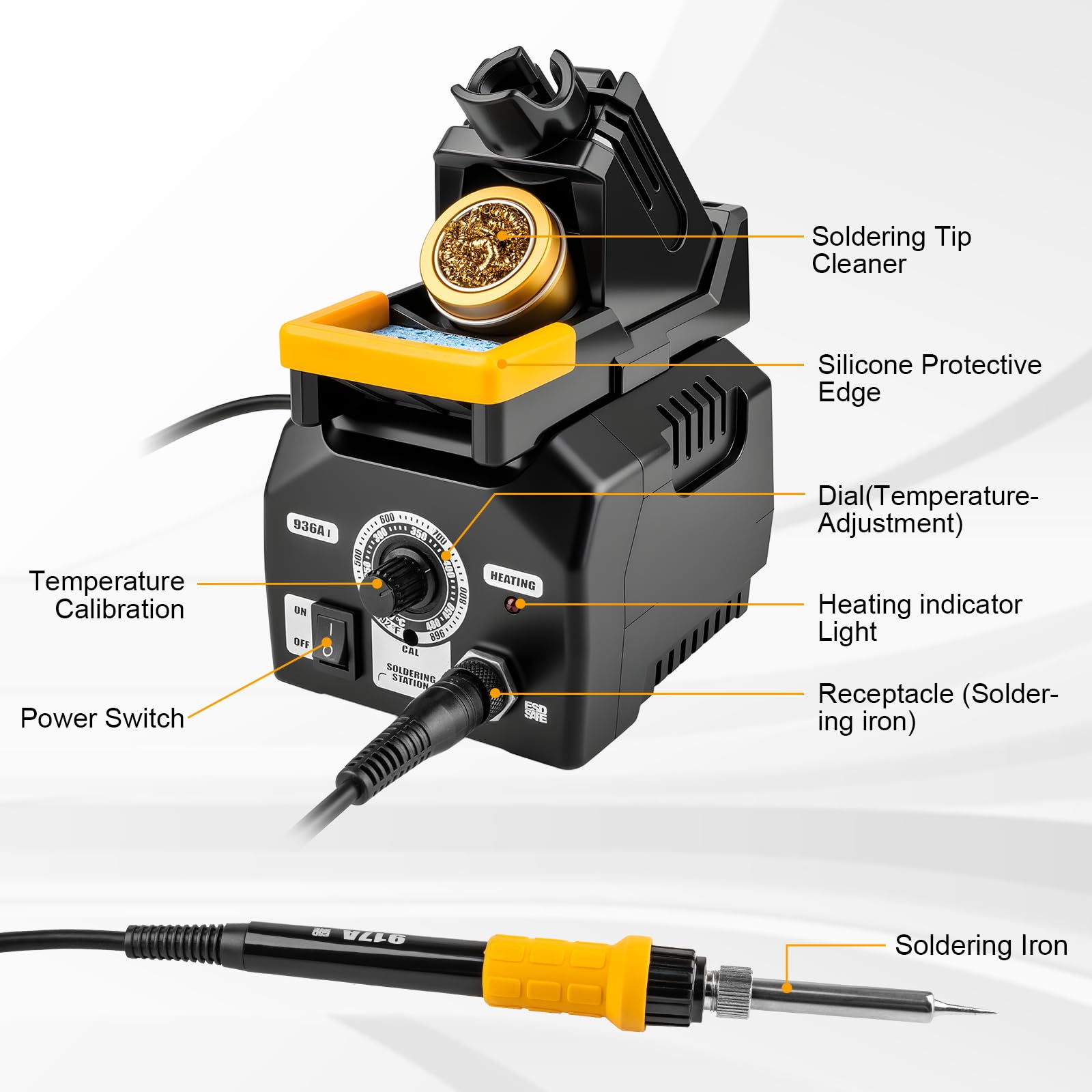 COMPLETE KIT READY FOR IMMEDIATE USE: You'll receive: 936 Soldering Stand, ESD-Safe Soldering Iron, Nickel-plated copper soldering iron tips (900M Series), and user manual