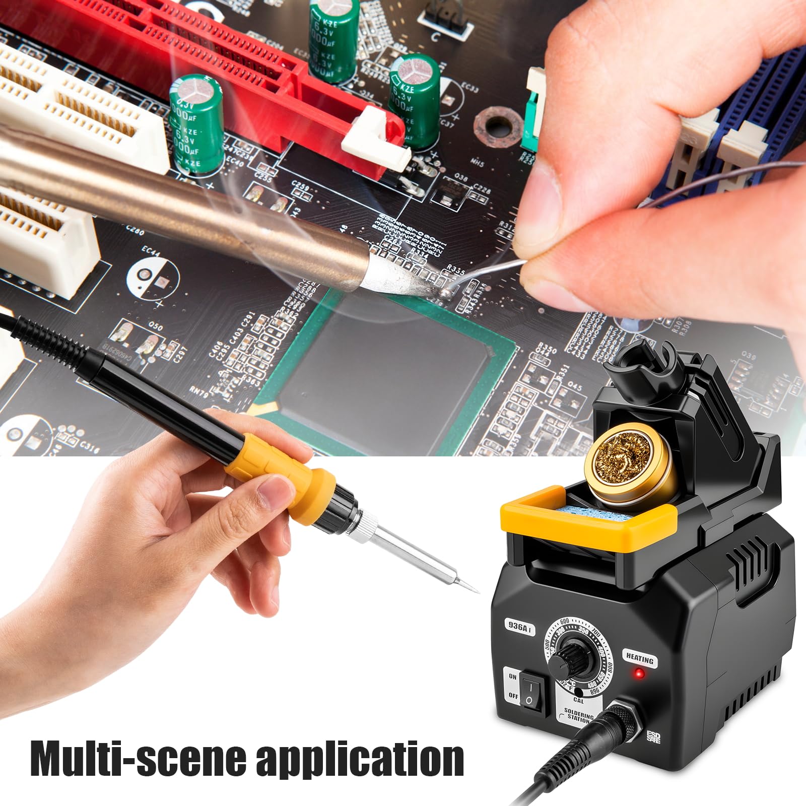 RAPID HEATING AND STEADY OUTPUT: The ceramic heating core reaches 392°F in 30 seconds. Maintains ±9°F stability during continuous soldering, suitable for circuit boards (662°F) to power wires (752°F), electric soldering station without temperature drops