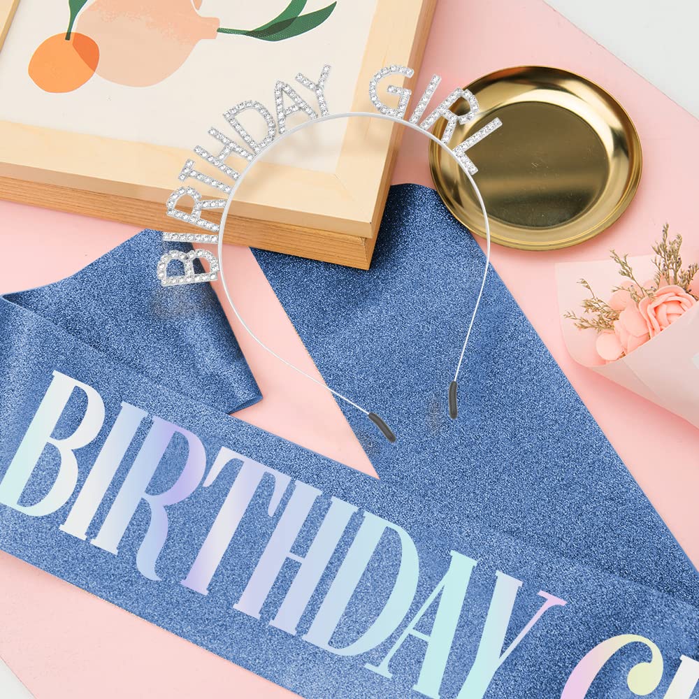 🎀【Birthday Decorations Gift】Birthday girl crown and sash, birthday girl crown adult. Birthday accessories gift for yourself, sister, female friend, mom, wife, aunt, grandma, let her be the princess and queen of the birthday party, create more happy atmosphere in the birthday party.