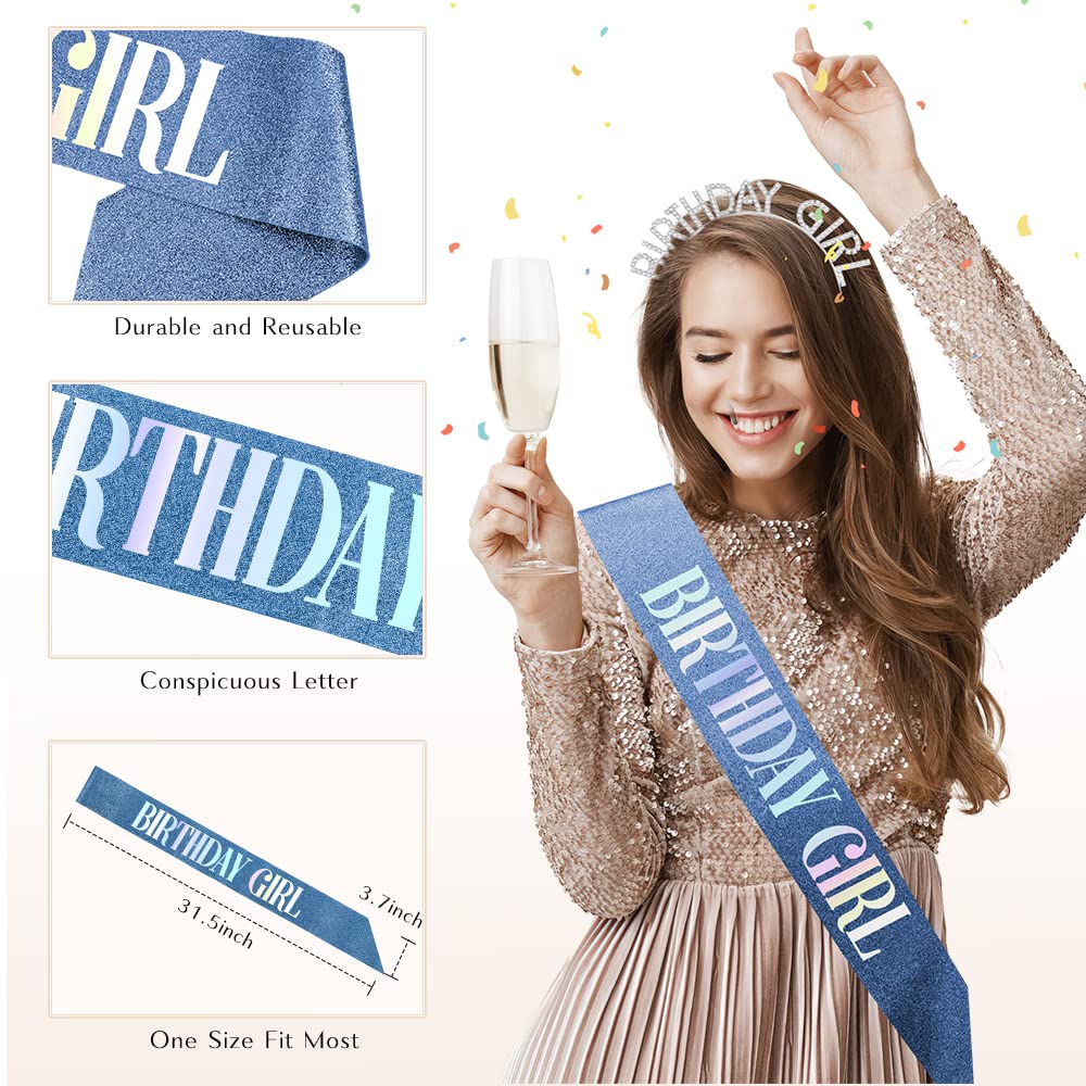 ✨【Happy Birthday Sash】Birthday sash measures 30 inches long by 3.7 inches wide. Available in satin and glitter fabric. Not easy to tear or wrinkle, keep beautiful all day long. The headgear weighs 1.5 ounces, comfortable to wear all day.