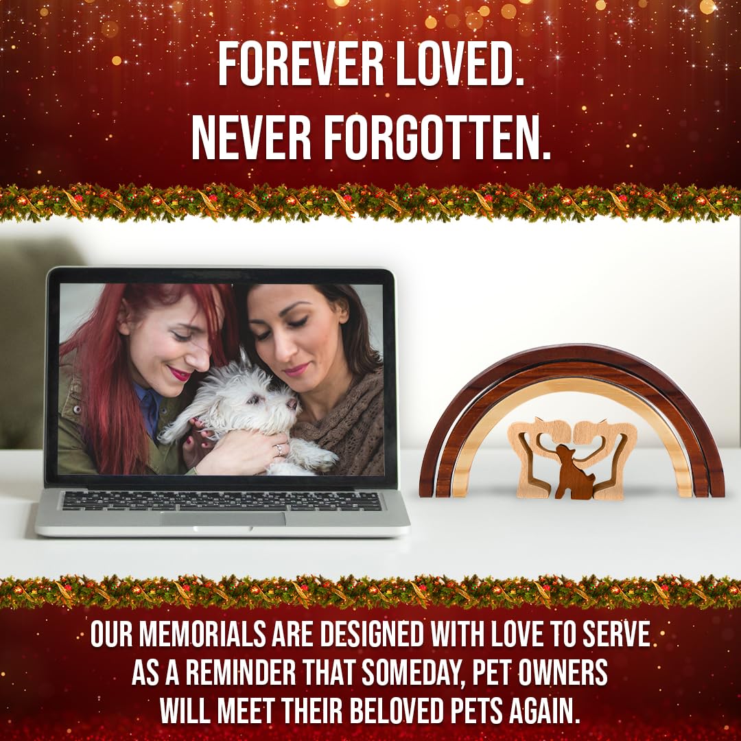 Unique, Handcrafted, 100% Wood - No Two Loss of Dog Sympathy Gift Alike: Bold, Beautiful & Sturdy, these 3-tone stained wooden rainbow bridge pet memorial gifts boasts a unique variation in color, cut and size, sparking joy in the hearts of grieving pet owners as they perfectly perch atop the mantle, shelf, nightstand or table.