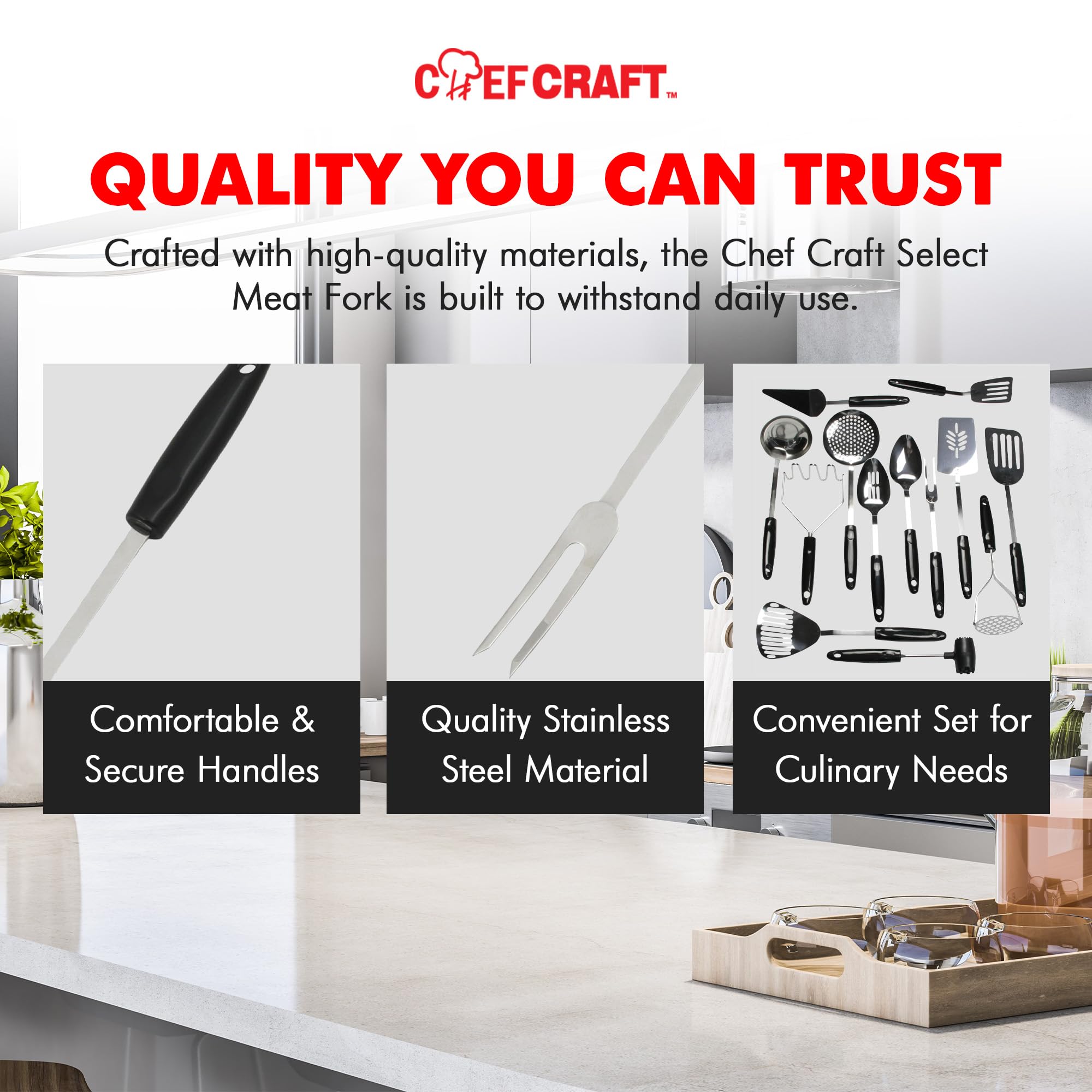 An essential in any kitchen, this stainless steel fork offers an ergonomic plastic handle and a stainless steel construction which resists rust. It is perfect to use with stainless steel and cast iron, or any pan that does not have a non-stick coating. Reach for this Select Meat Fork every time that you are cooking with stainless steel and you won't go wrong!