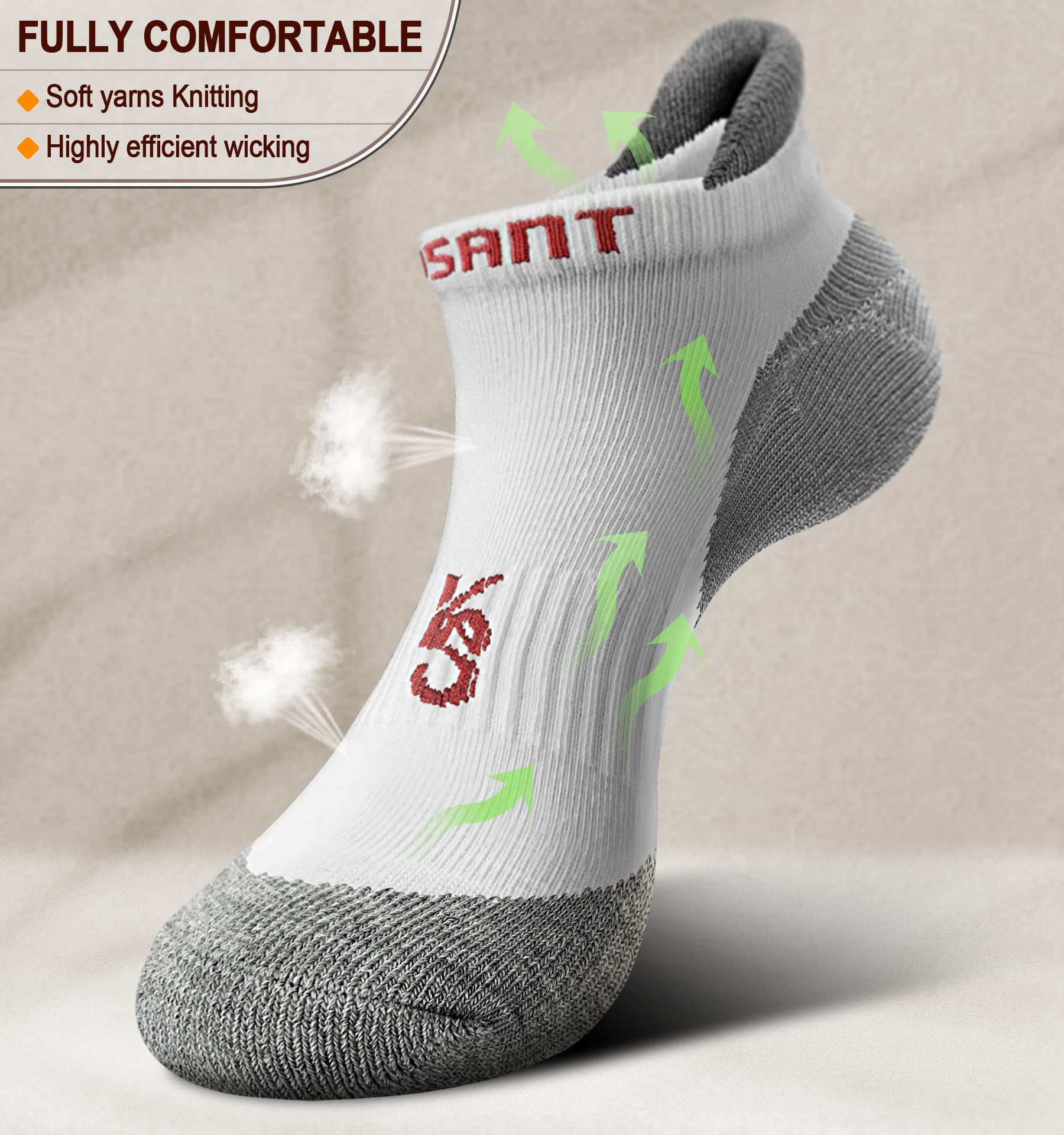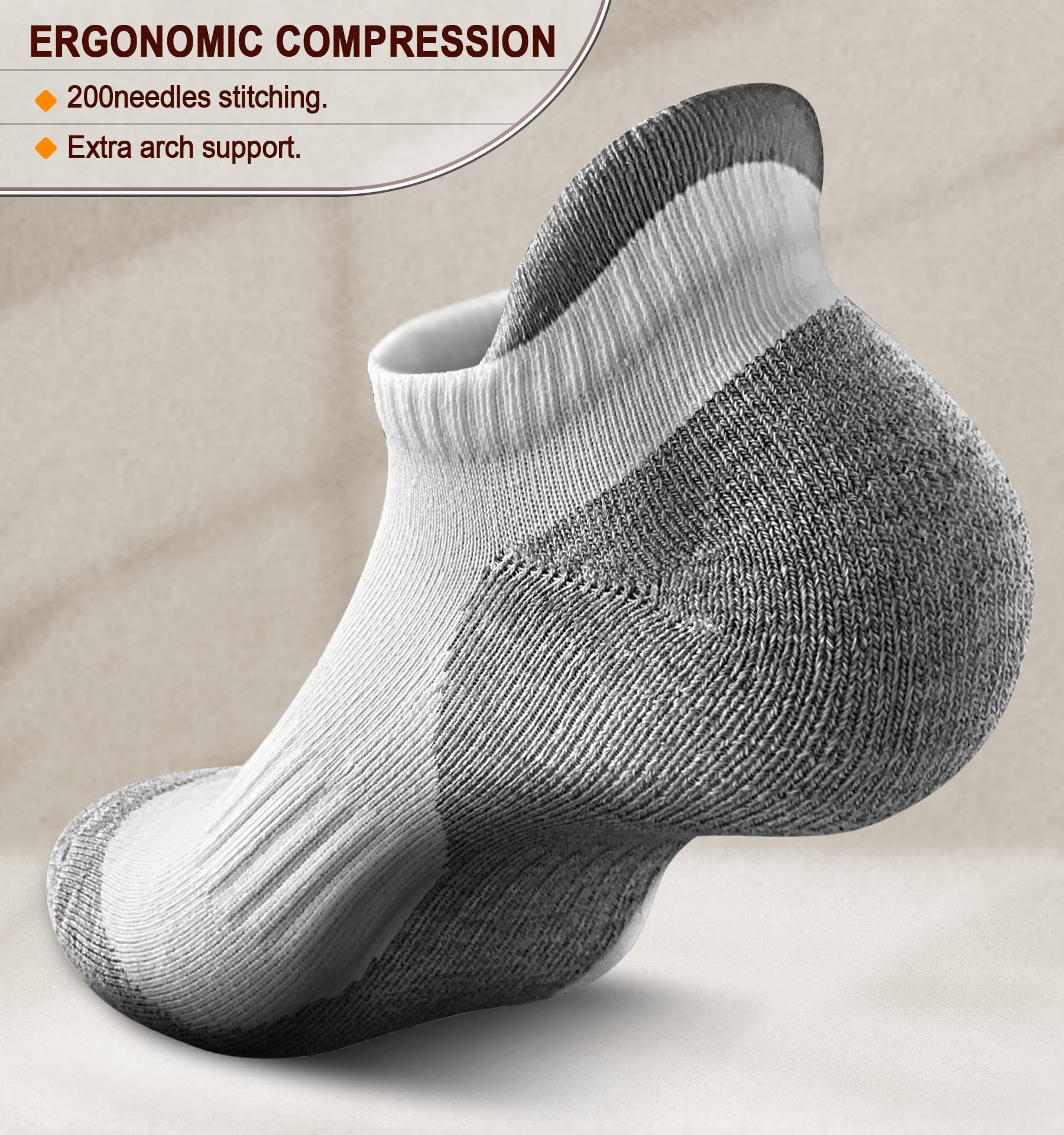 Secure Fit--Heel tab and targeted compression provide proper cushion and support around heel and arch,with Y heel deep pocket,stay on in the most active exercise;