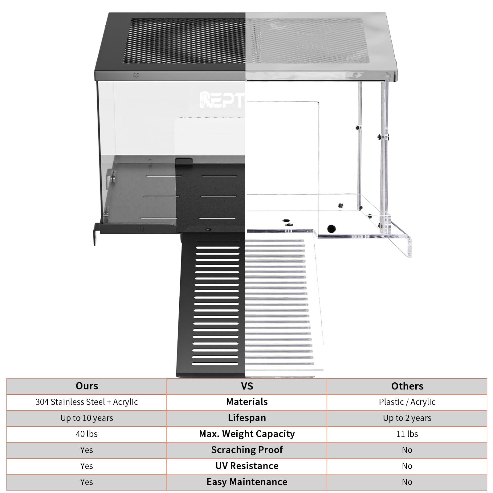 304 Stainless Steel: The top and base of the turtle basking platform are constructed with 304 stainless steel, specifically engineered for humid aquatic environments. It offers exceptional durability and easy cleaning, creating a healthier habitat for turtles