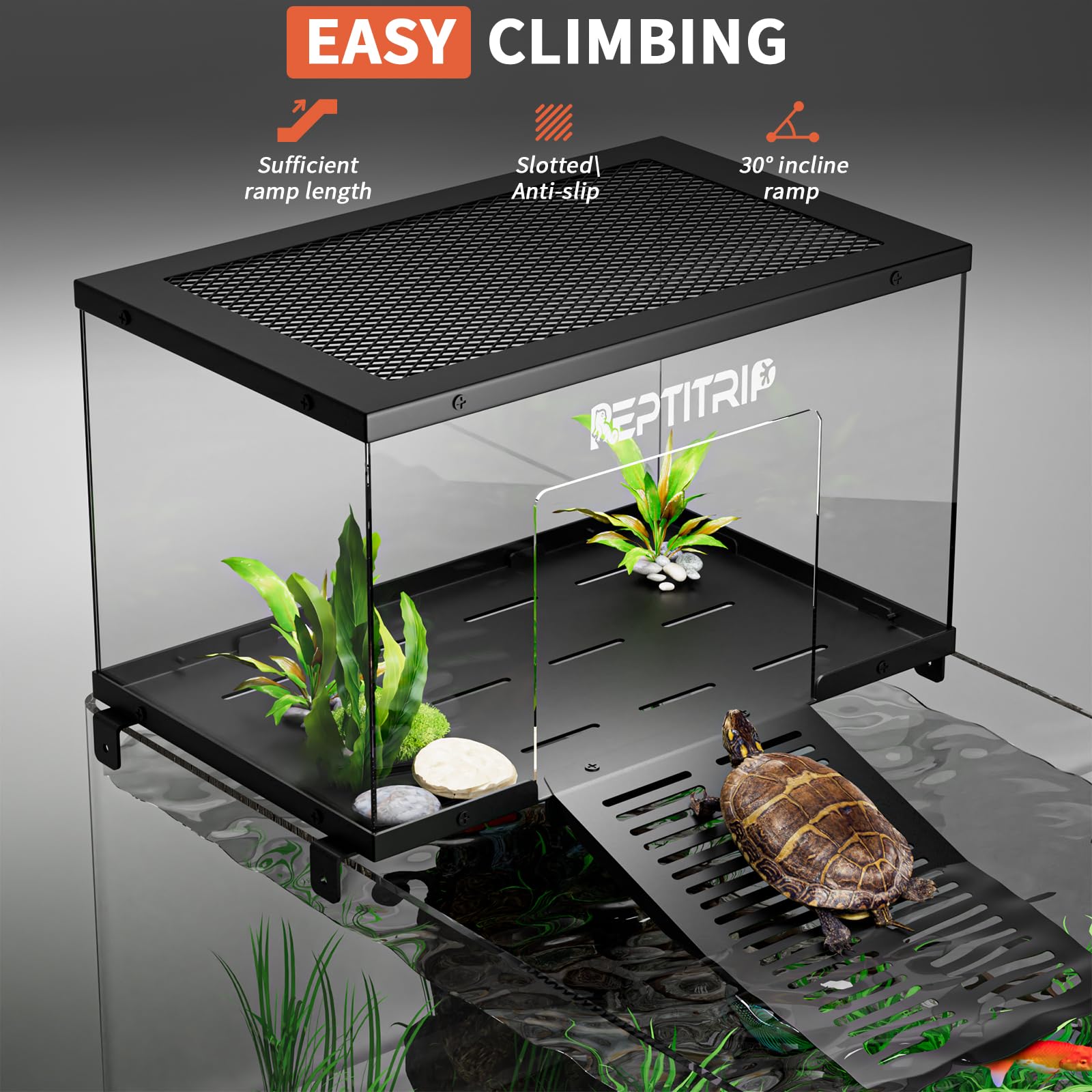 Non-slip Ramp: The turtle ramp is partially hollowed out to enhance grip and prevent slipping when turtles climb the slope. The ramp provides solid and stable support, ensuring that turtles of all sizes can climb smoothly and effortlessly