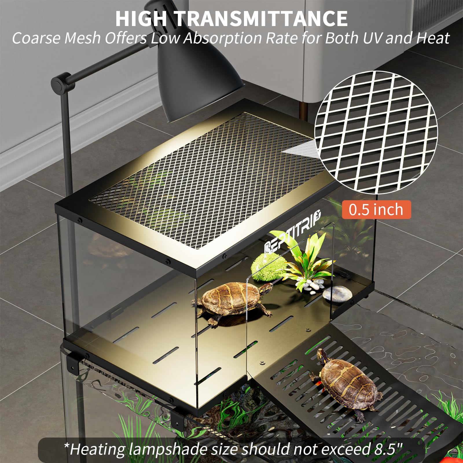 Polycarbonate Material:High light transmittance ensures full penetration of light through the basking platform, creating a bright and warm environment for your turtle to bask. The high transparency of polycarbonate allows you to clearly observe your turtle's activities, maintaining excellent visibility while enhancing the aesthetic appeal of the turtle basking platform
