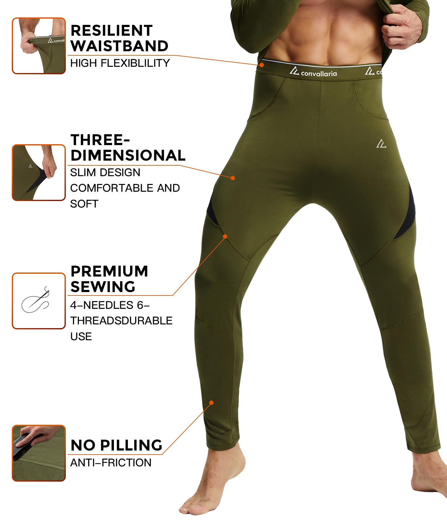 Fly/Pee Hole Design:Long johns for men thermal is designed with a pee hole, which keeps you warm and dry while also making it easy to relieve yourself,which is very convenient when doing outdoor sports in cold weather