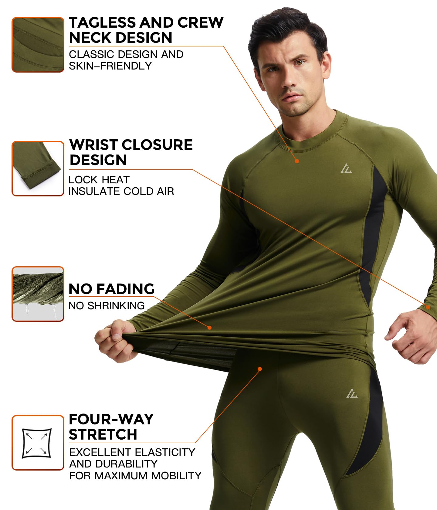 Moisture Wicking and Anti-odor:Mens thermals top and bottom set are made of breathable and moisture wicking fabric that quickly wicks away moisture,suppressing the unpleasant odors left behind by sweat,keep you dry with no sticky or clammy feeling