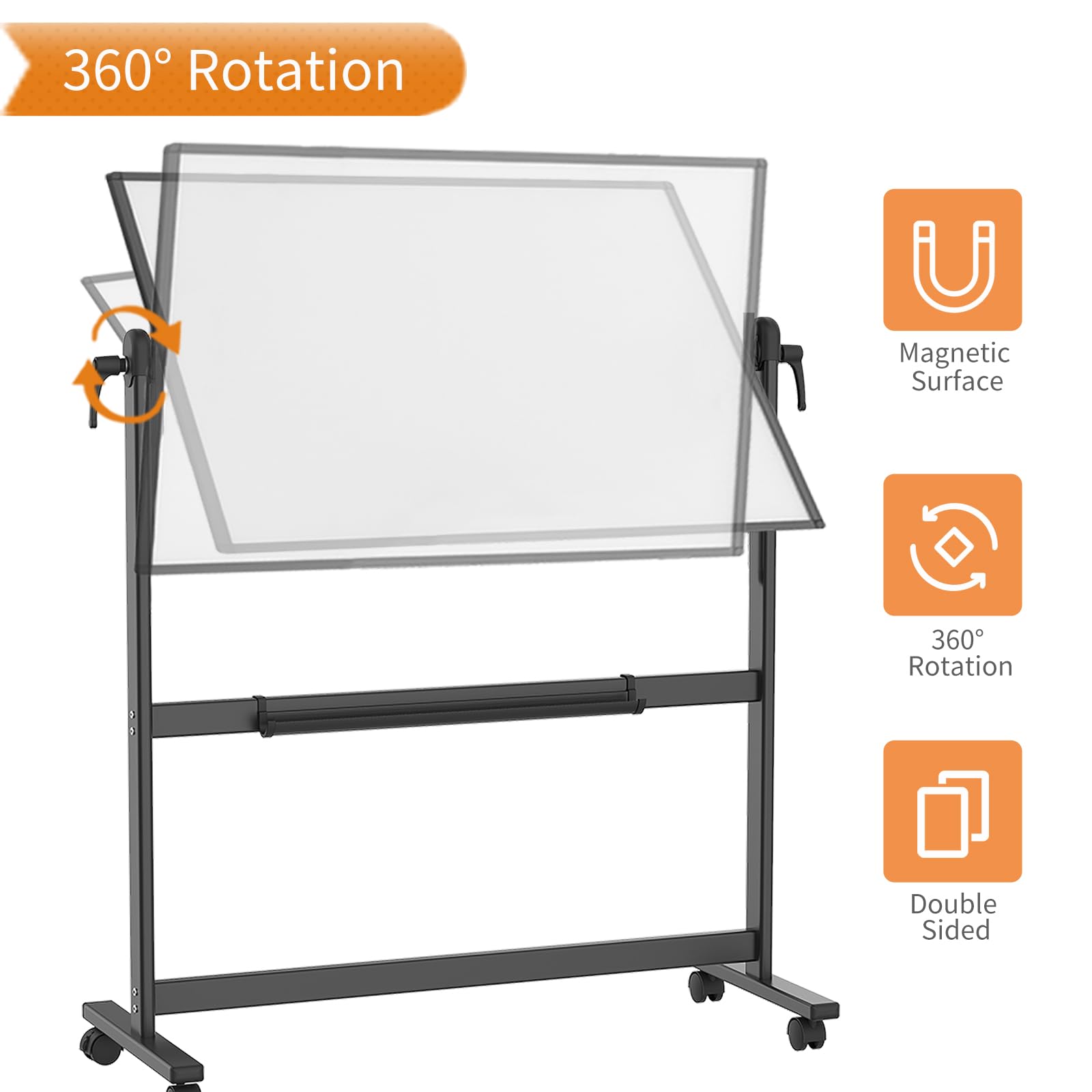 [360 Degree Rotated And Lockable] By the rotation handles, the whiteboard allows you to adjust writing angle 360 degree and lock in position. When rotating the board, loosen both side handles, adjust to the desired angle, then tighten the handles.