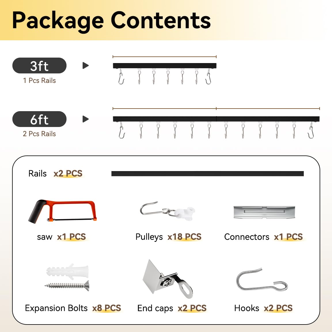 Easy to Install: The room divider rods comes with everything needed to install: tracks, connectors, roller hooks, end caps, screws & wall anchors, a saw etc.