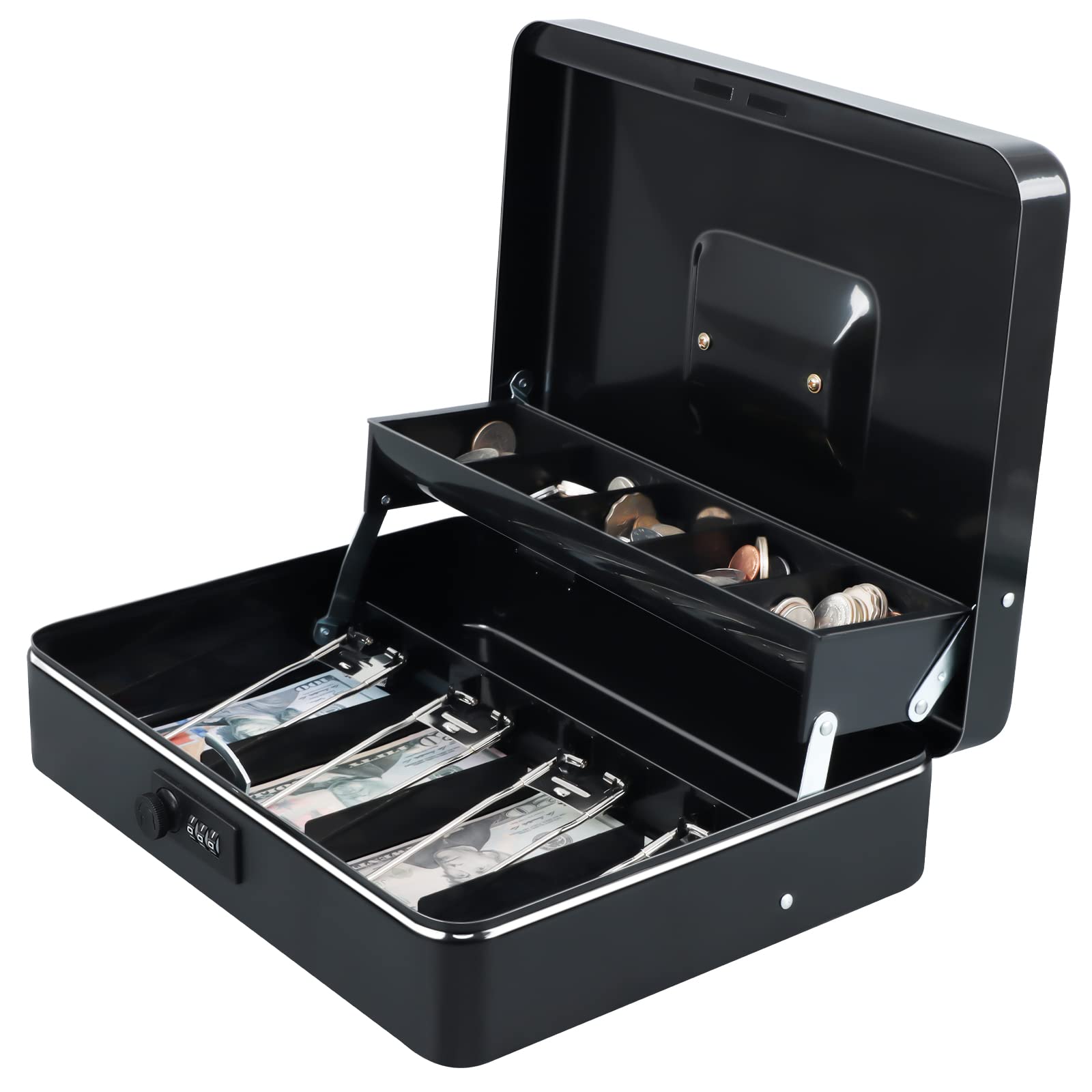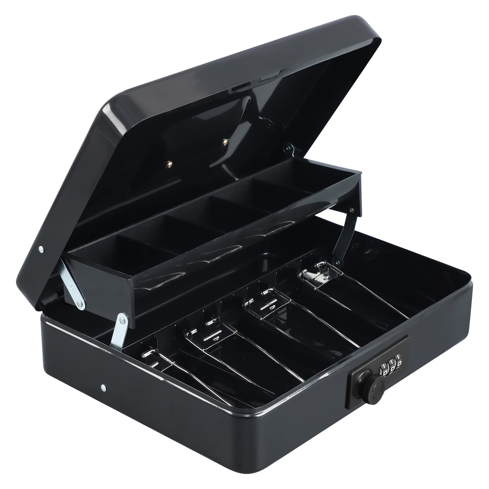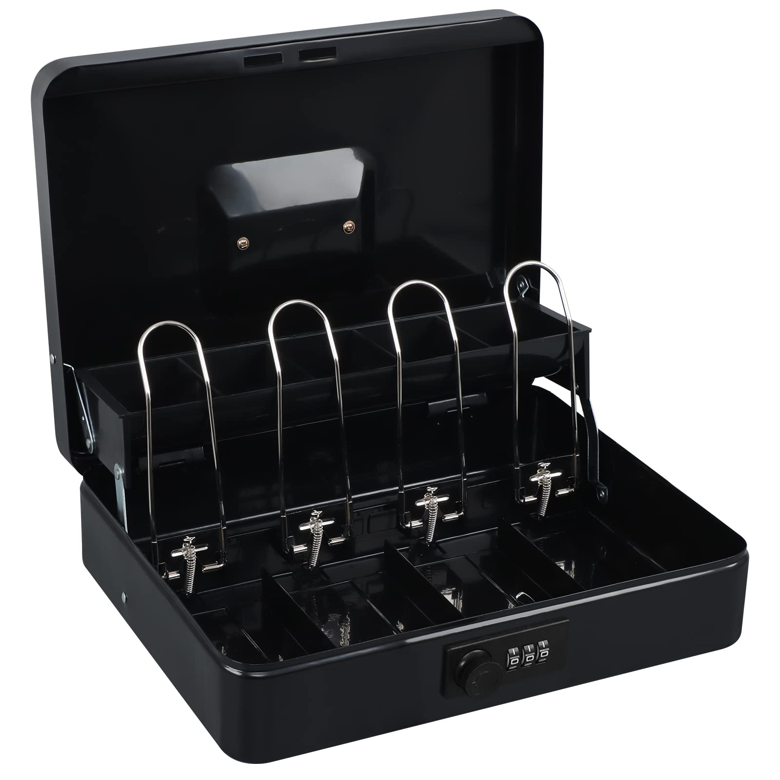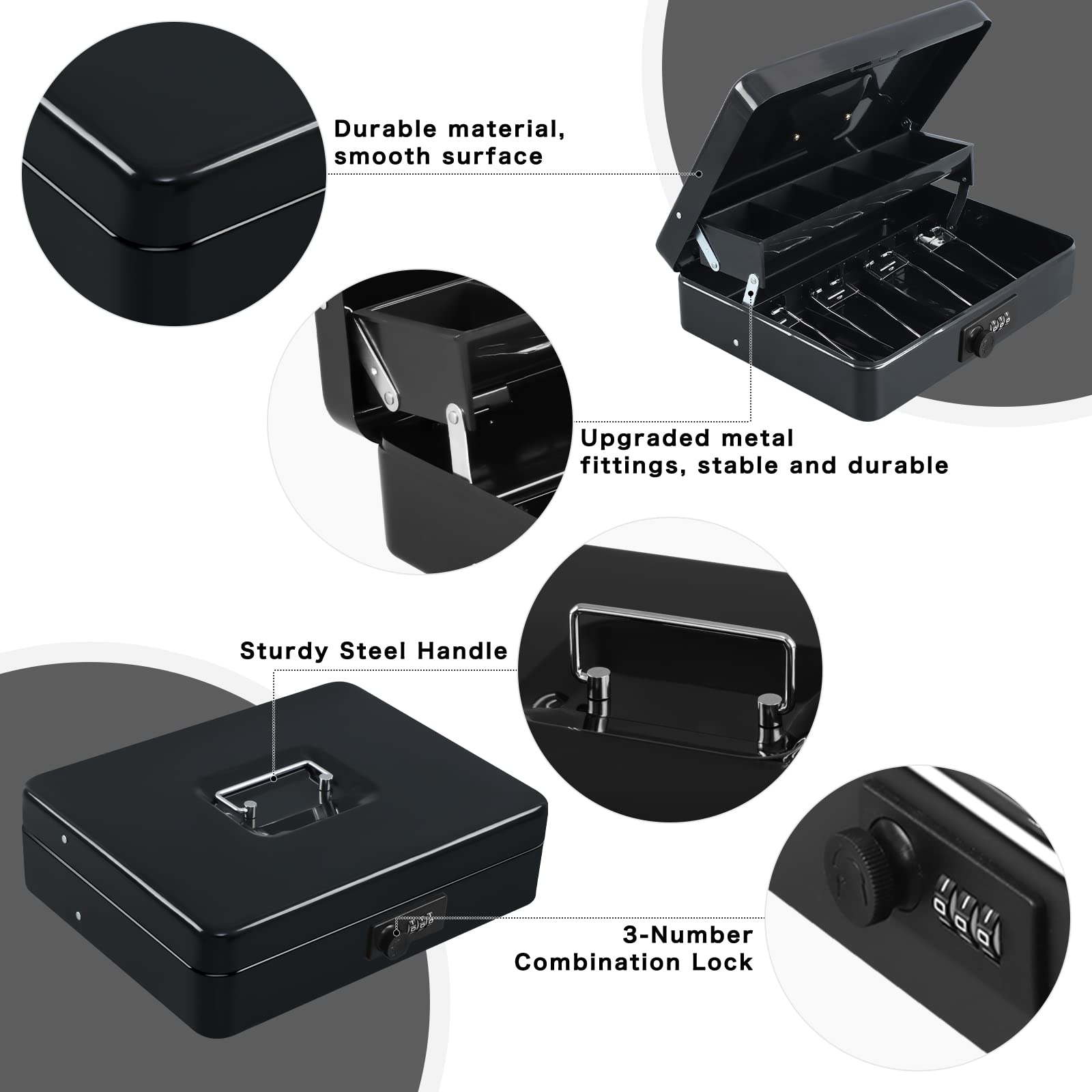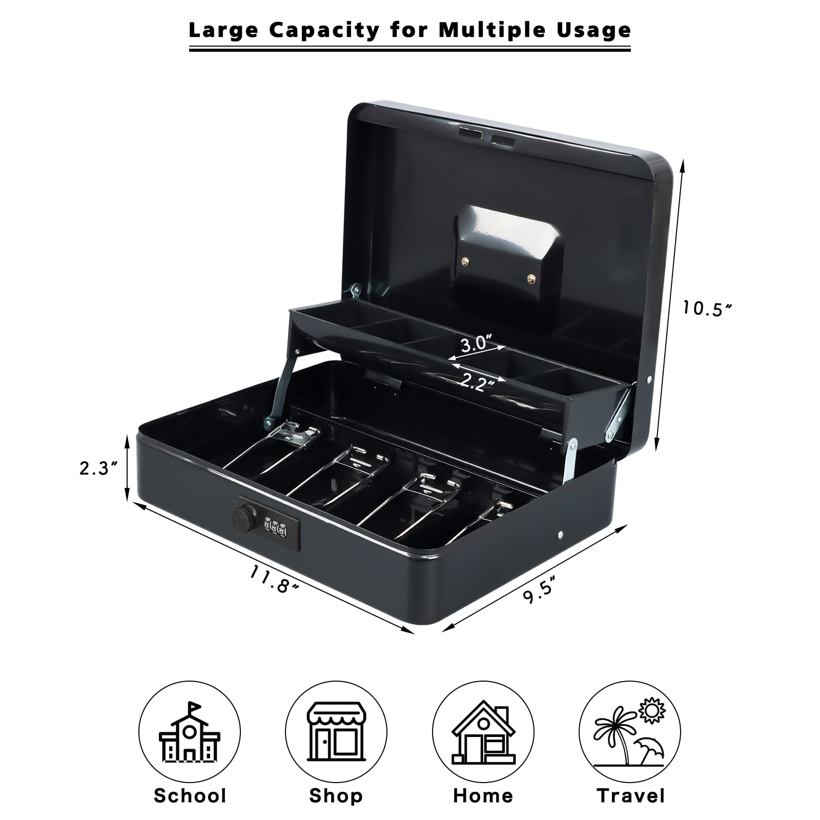 【COMBINATION LOCK】An advanced 3-number combination lock can keep your valuables safe, code can be easily changed only by yourself.The dimension of the cash lock box is 11.8 x 9.45 x 3.54 inches.