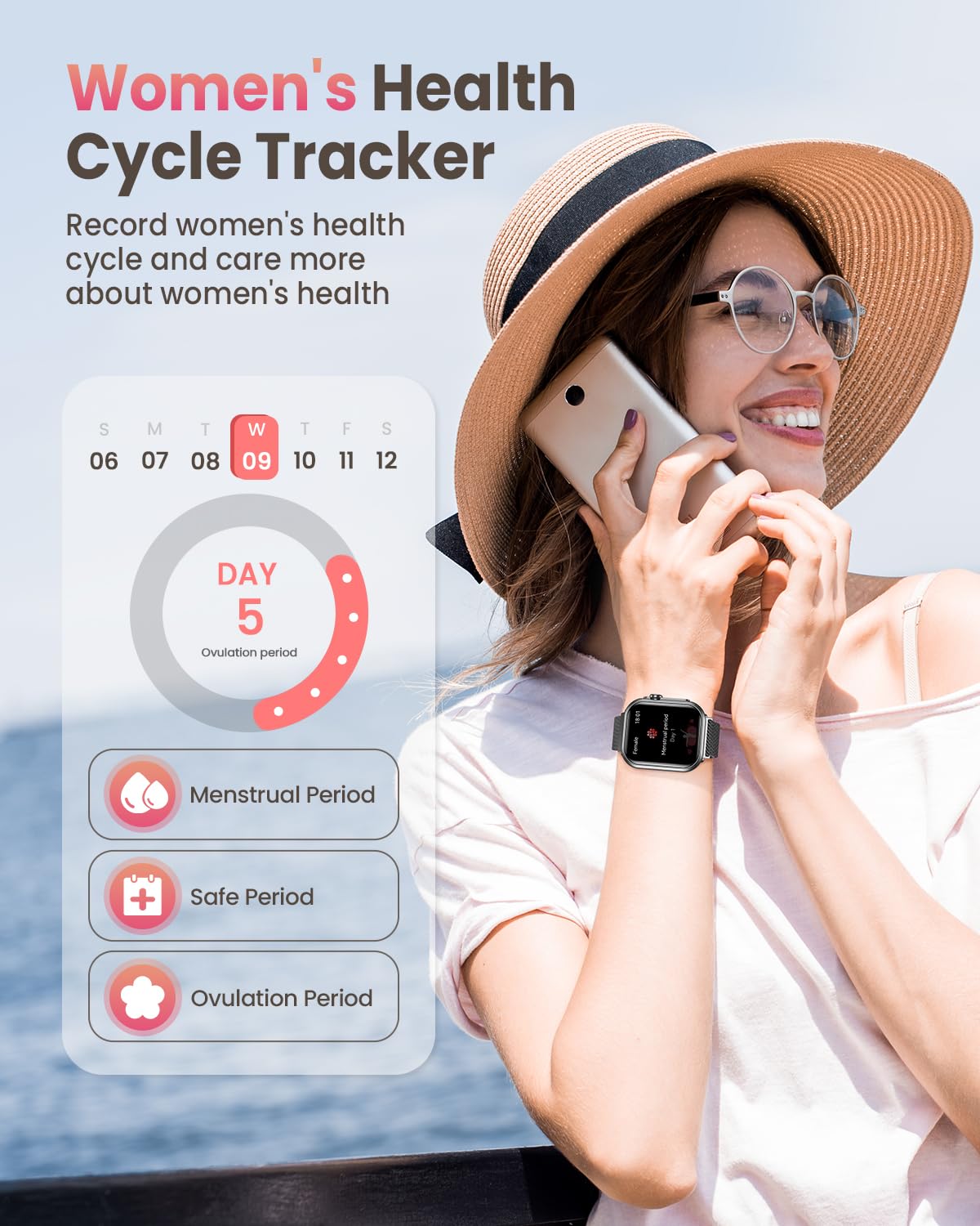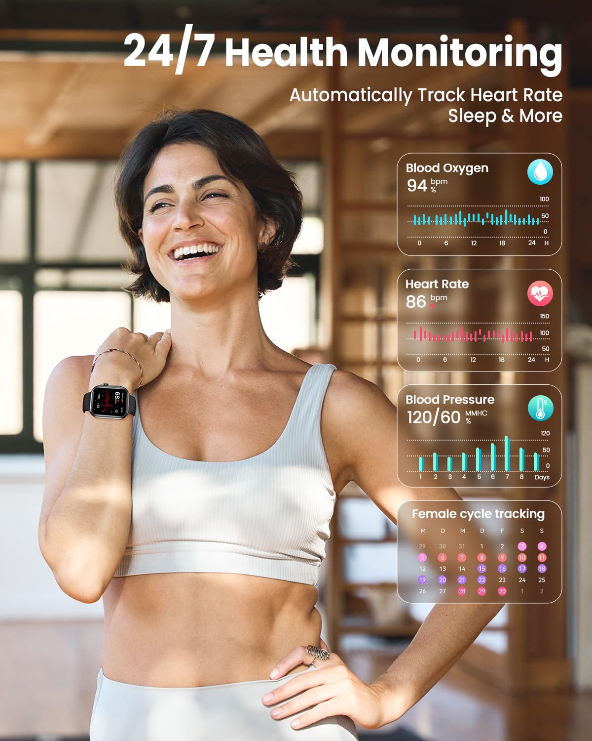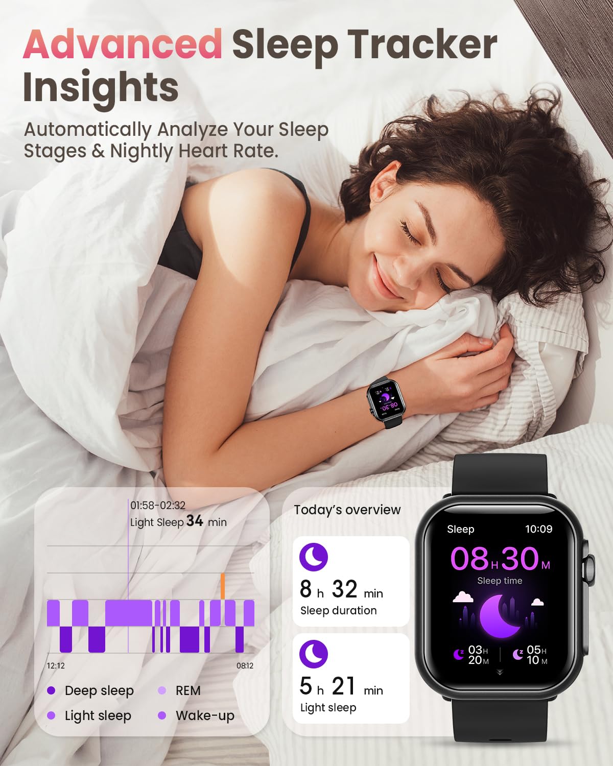 Health Activity Tracker: Watches for women track Heart Rate, Blood Oxygen (SpO2), Blood Pressure, and Sleep (deep/light/REM analysis,get a better sleep habit by viewing your sleep data) 24/7.Note: Sleep is recorded from 9:30 p.m. to 12:00 p.m. the next day; going to sleep too early or too late may not be accurately recorded. Perfect for health-conscious users, seniors, or athletes optimizing performance