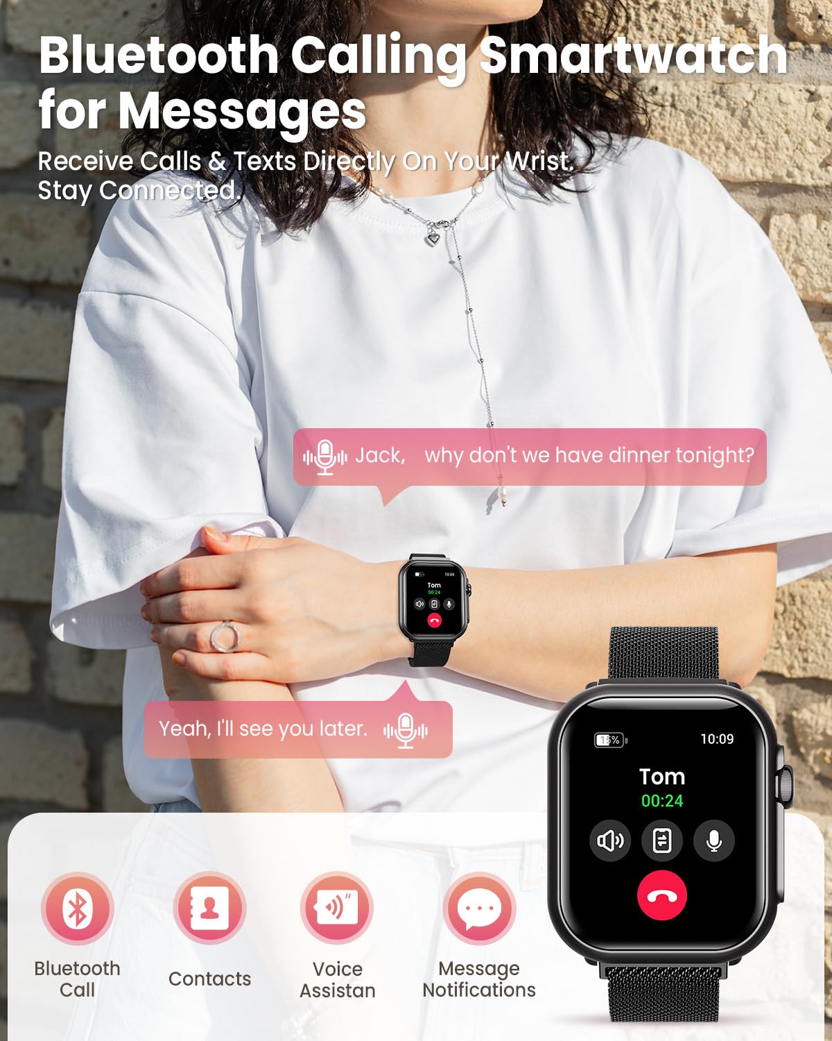 Back to Wrist Communication: Make/answer calls directly from your wrist with HD clarity using smart watch. Watches for men receive SMS and app notifications (Facebook,Twitter,WhatsApp,Instagram, etc.). Ideal for drivers, gym-goers, or busy professionals needing hands-free connectivity. Note: After connecting Bluetooth, please turn on message and call notification in FitCloudPro APP (you cannot send text), keeping the "FitCloudPro" app running in the background