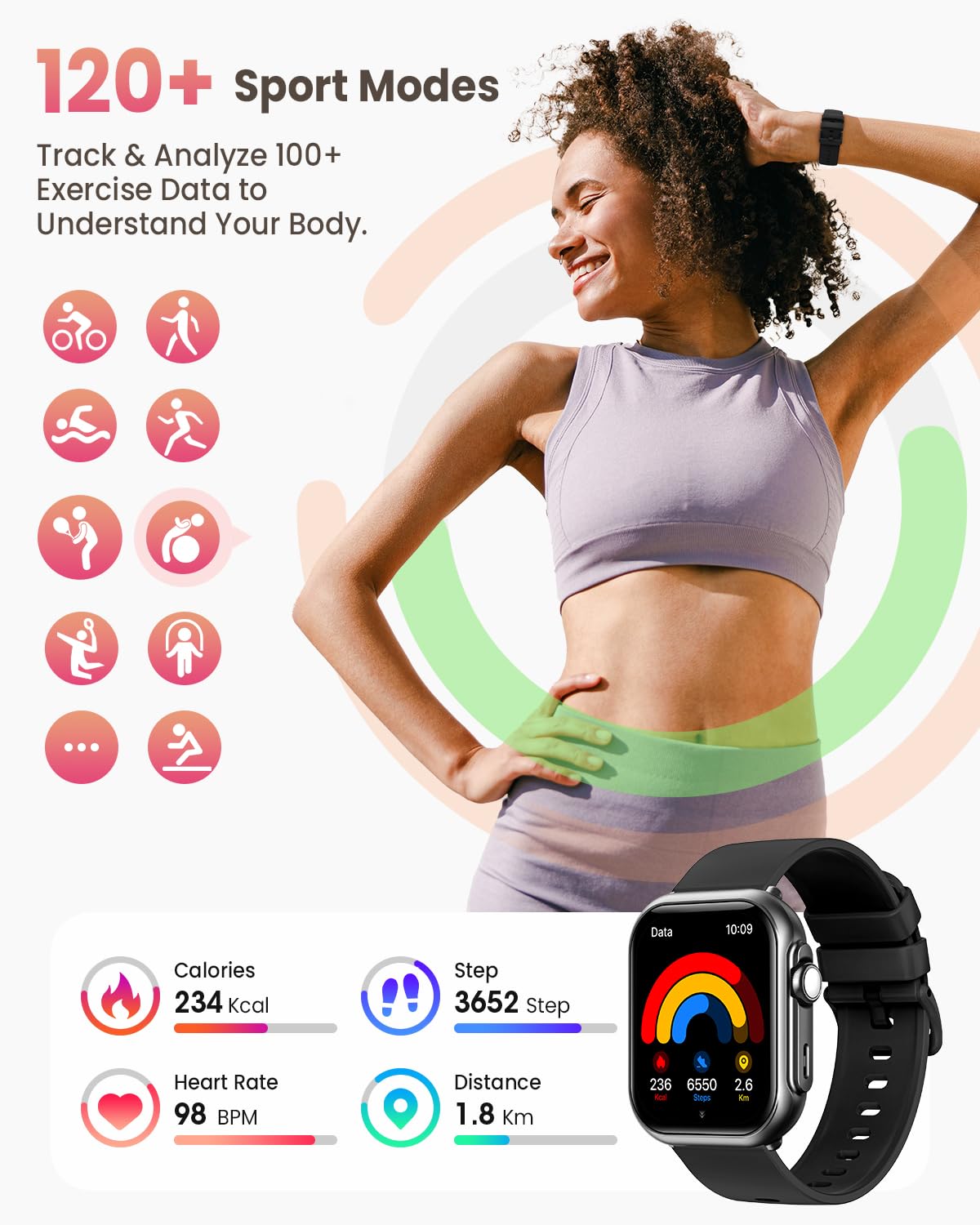 120 Sports Modes & 5ATM Waterproof: Fitness tracker features 120+ sport modes including running swimming and yoga with GPS tracking via your phone.Fitness watch accurately measures calories steps distance and duration The 5ATM waterproof rating makes it perfect for swimmers and outdoor enthusiasts Whether you are a marathon runner or a weekend hiker this watch for men and women adapts to your active lifestyle