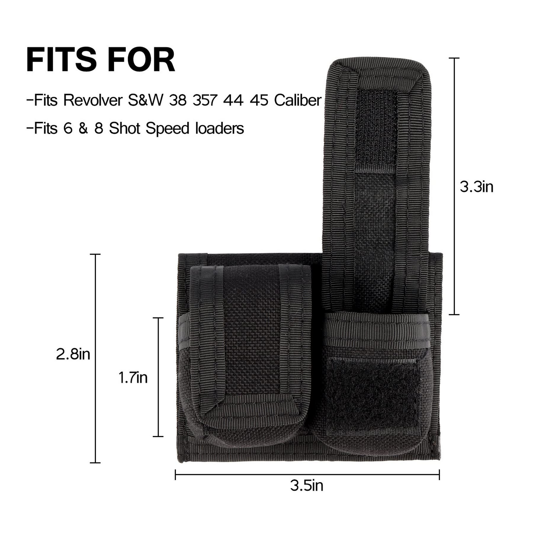 Suitable for: Speed loader pouches fits most speedloaders, Revolver S&W .38 .357 .44 .45 Caliber, 5 & 7 Shot
