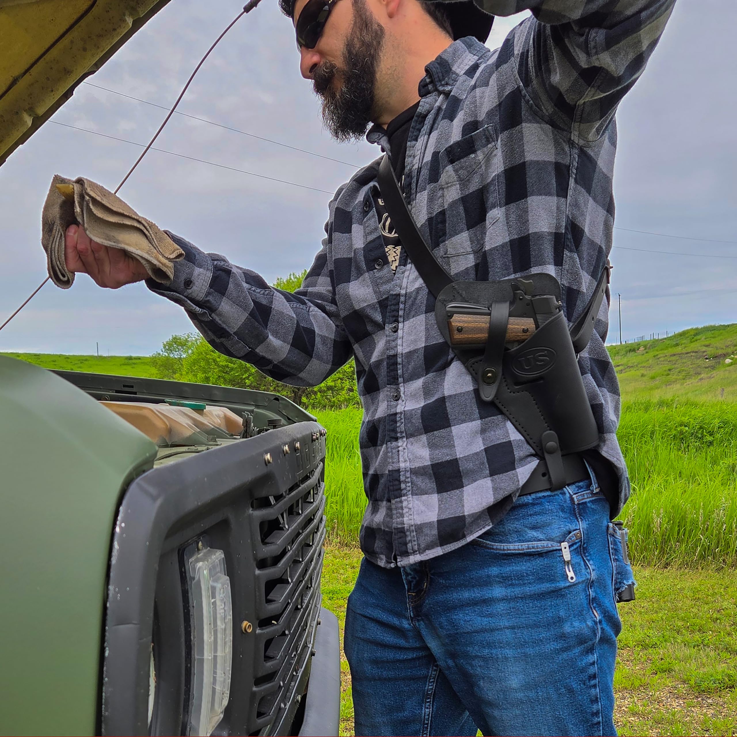 CROSSBODY DRAW: A single strap secures your gun over the shoulder and across the body, keeping your 1911 snug under your off-hand arm for an easy crossbody draw.