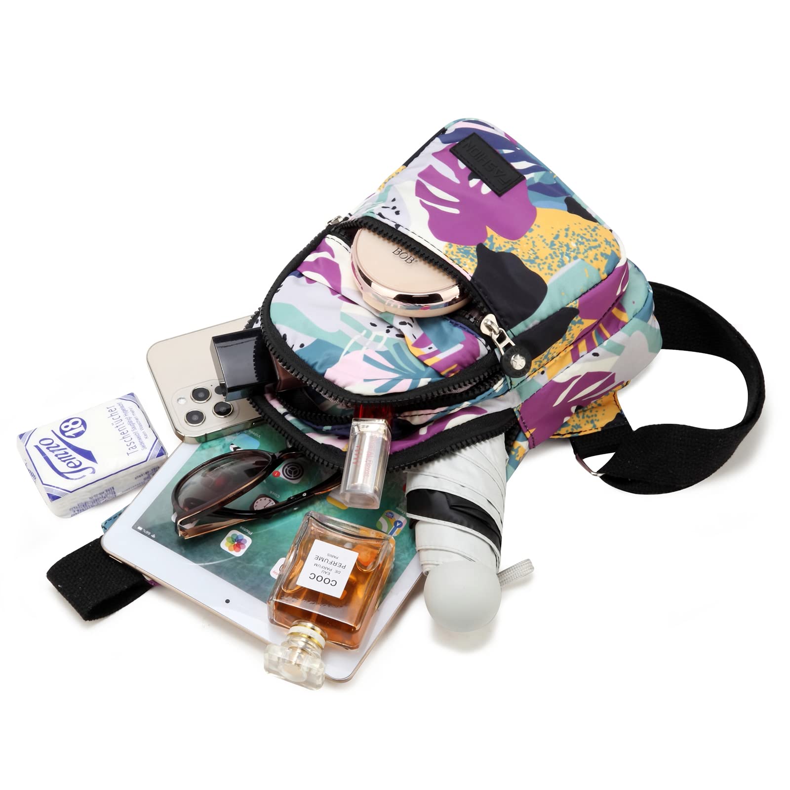Multifunctional use, This bag can be used as a sling bag for easy cross body carrying, a chest bag for convenient storage of items in front of the chest, and also a small mini backpack. It can easily hold daily small items, travel essentials, or outdoor sports equipment.