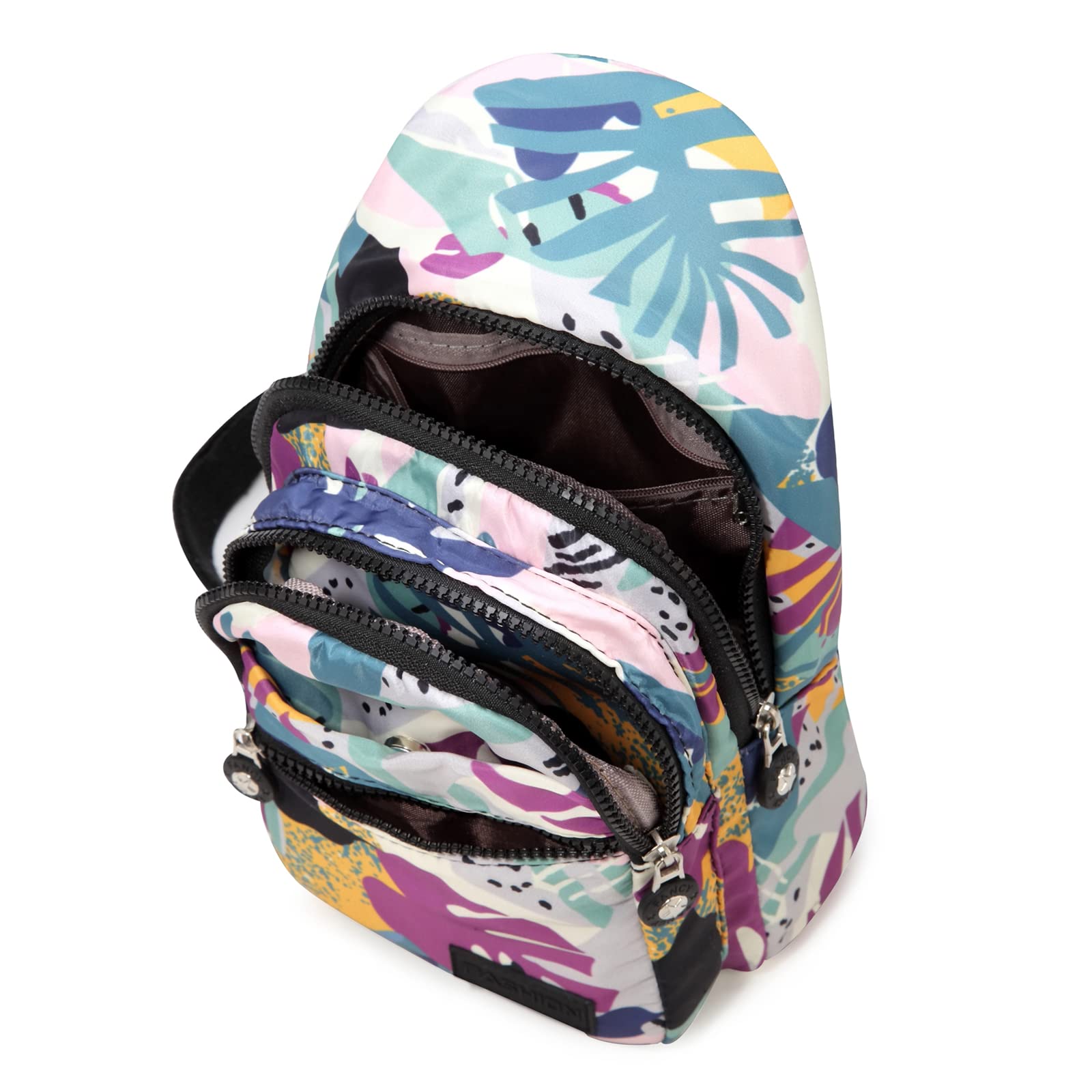 Design, Product Size: 11.2" x 6.1" x 3.3" , The sling bag is made of high-quality Water Resistant nylon,it is strong, sturdy and anti-scratch. This small sling bag has a versatile style. Whether you're wearing casual T-shirts and jeans, sporty workout outfits, or something a bit more formal, it can match perfectly.
